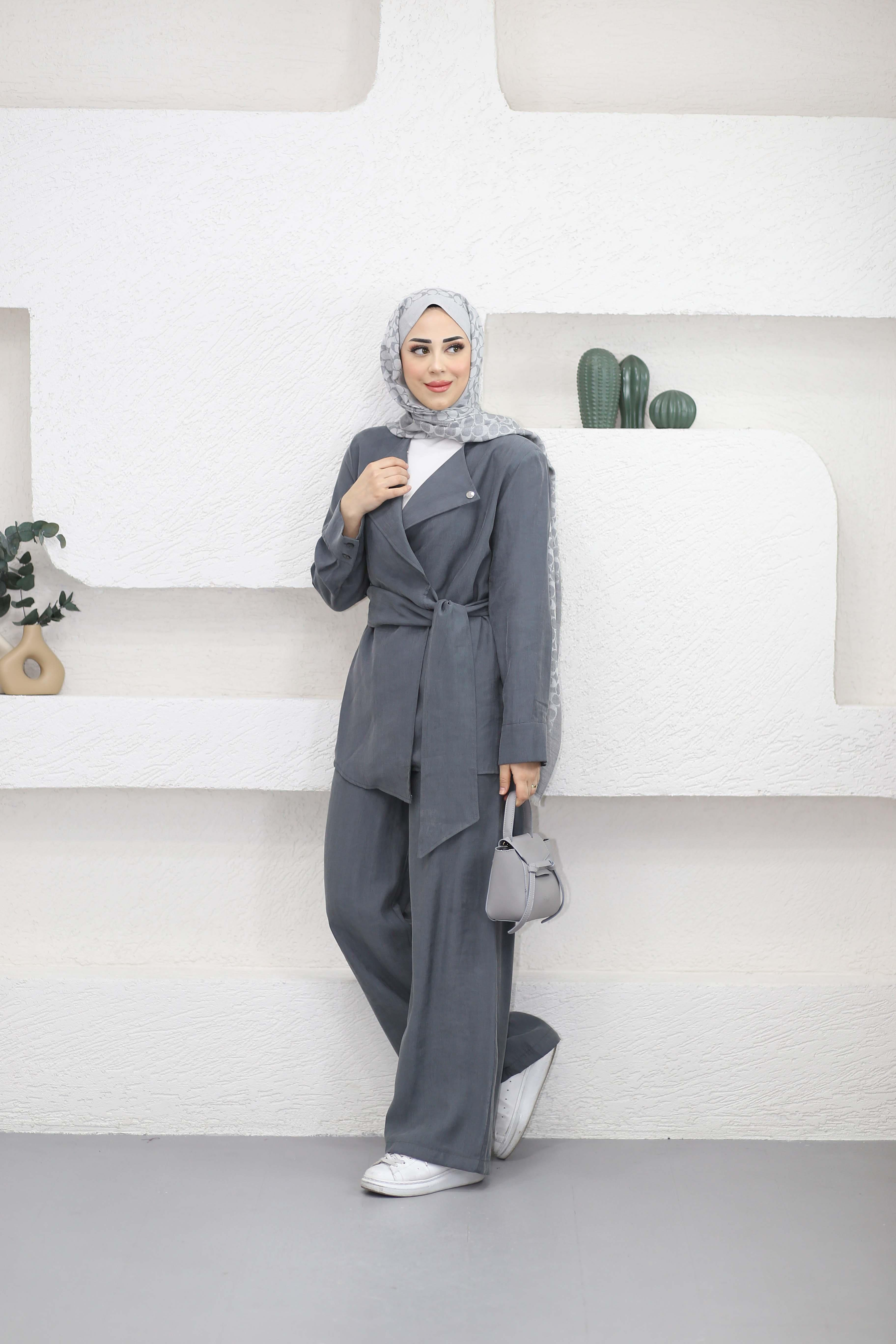 Bağlama Yaka Pantolon Takım Gri 838 (25YTKMMLA.0004)