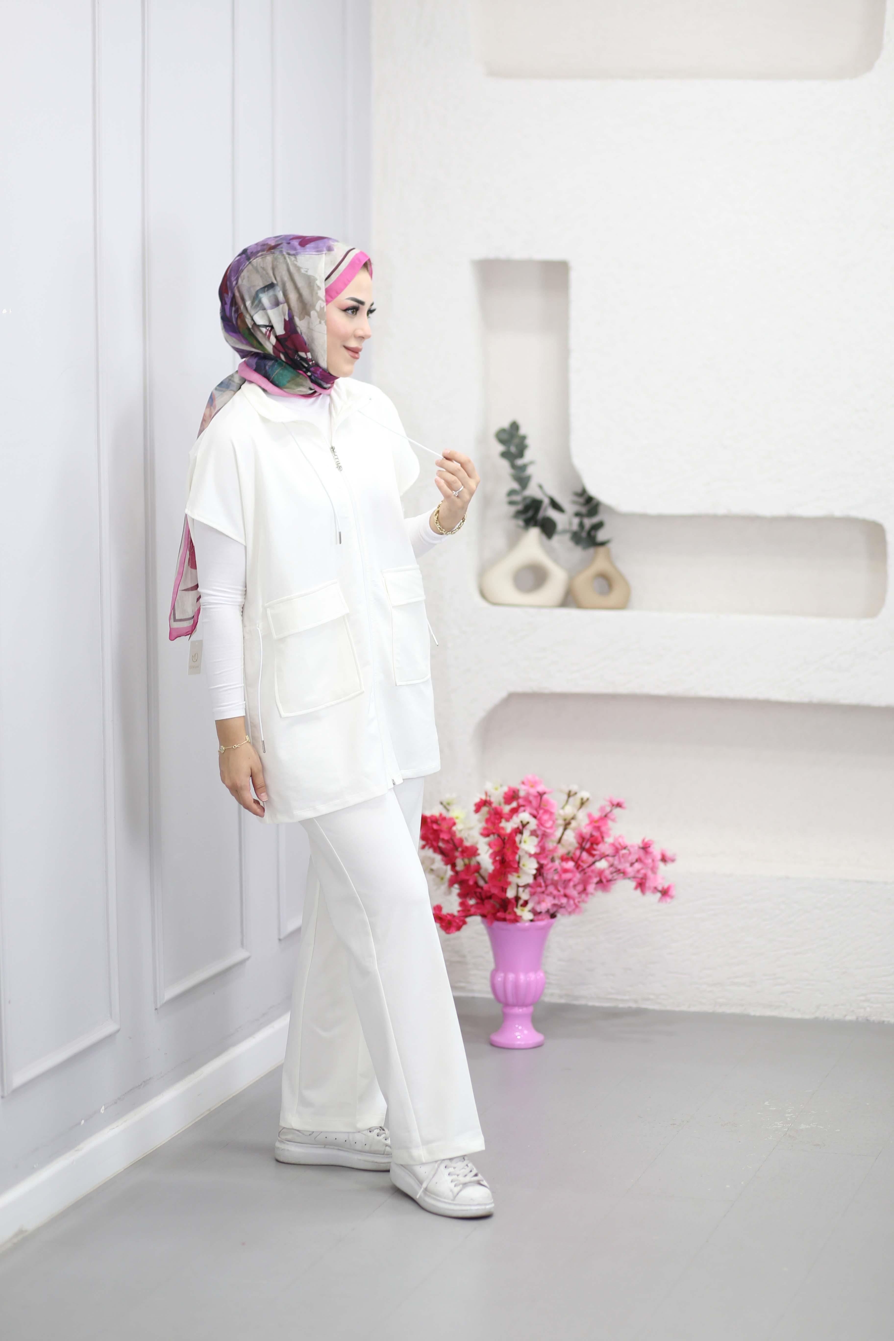 Beli Bağcıklı Yelek Takım Ekru 3050