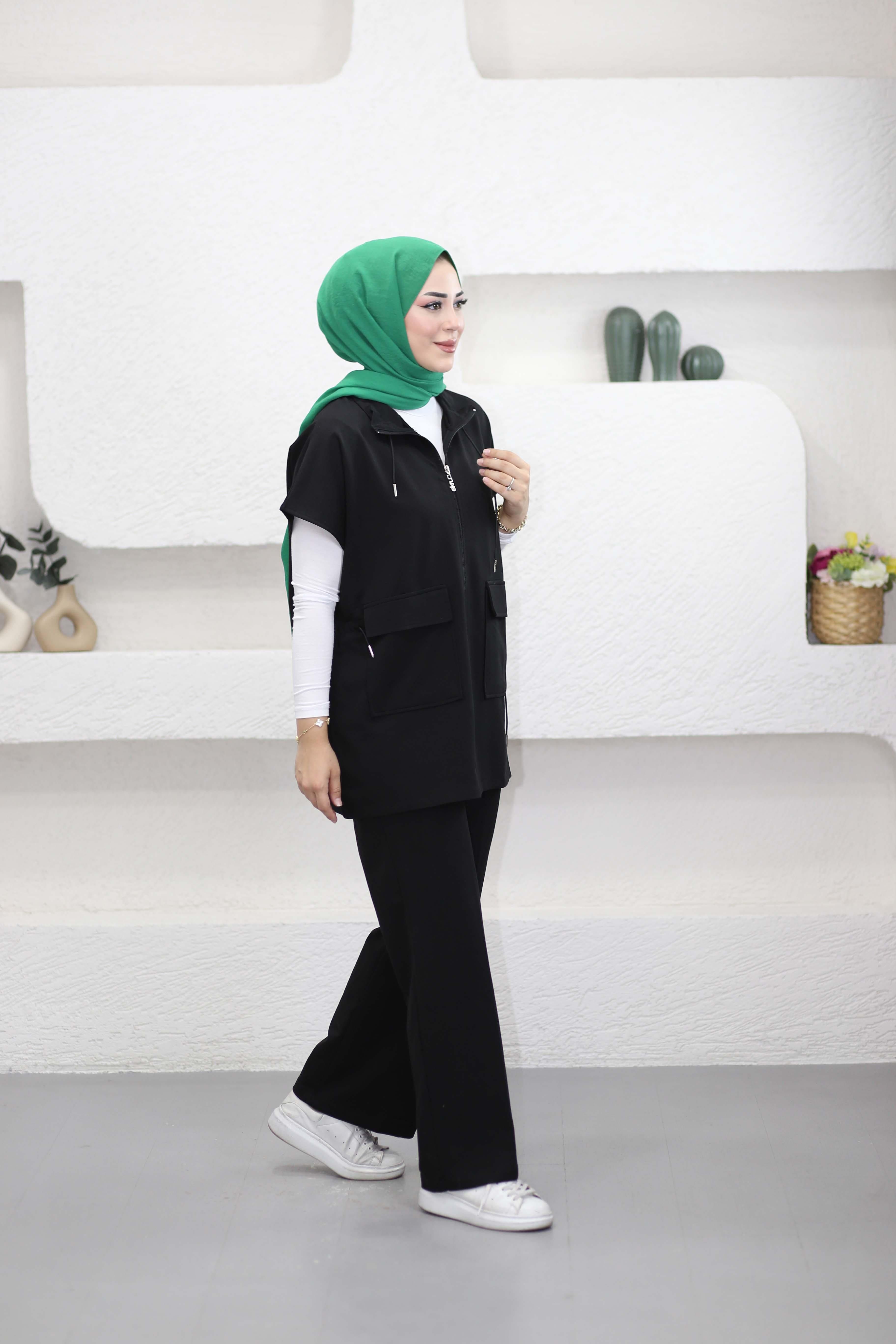 Beli Bağcıklı Yelek Takım Siyah 3050