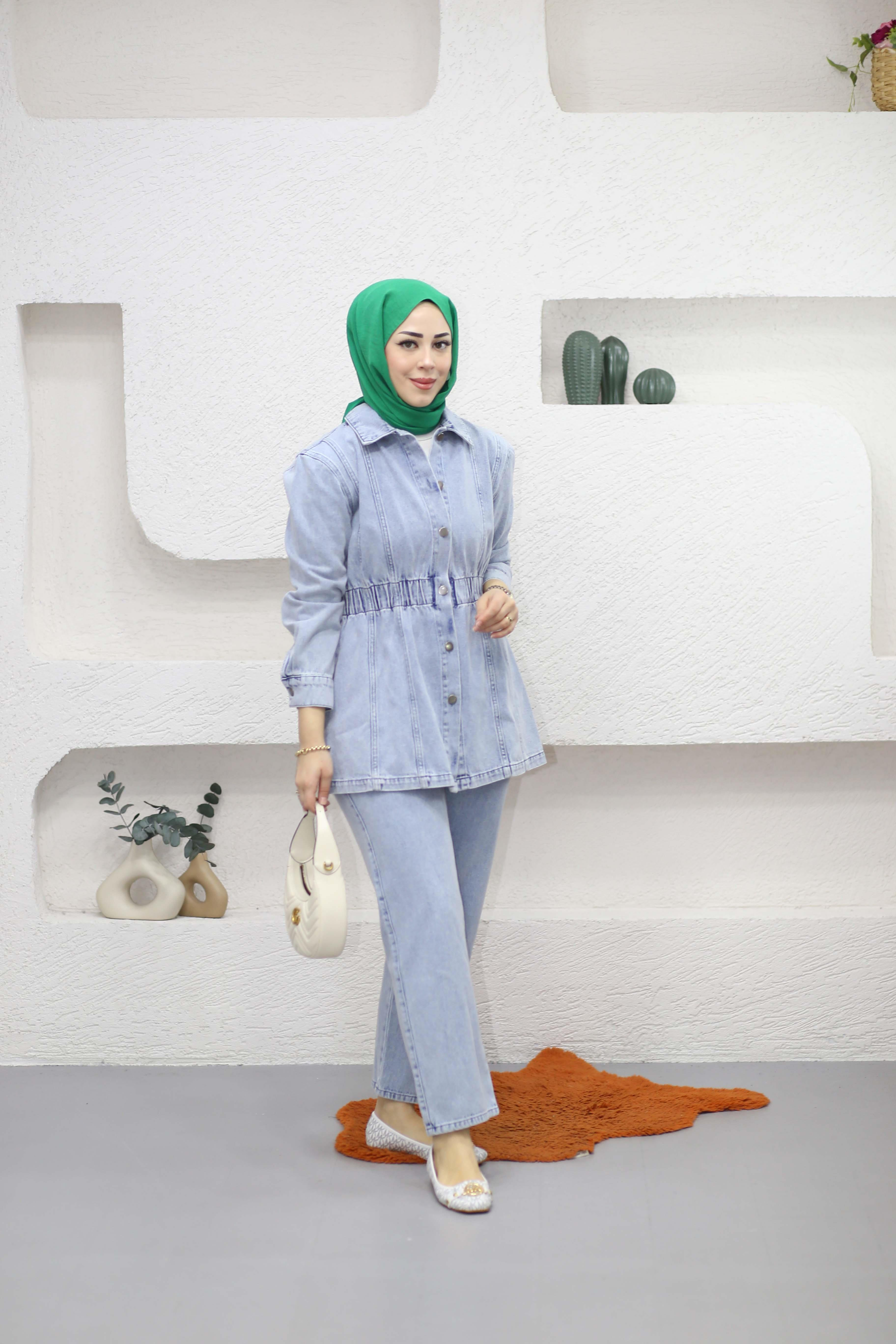Beli Bağlamalı Denim Takım Açık Mavi 7281 (25YTKMMGZ.0001)
