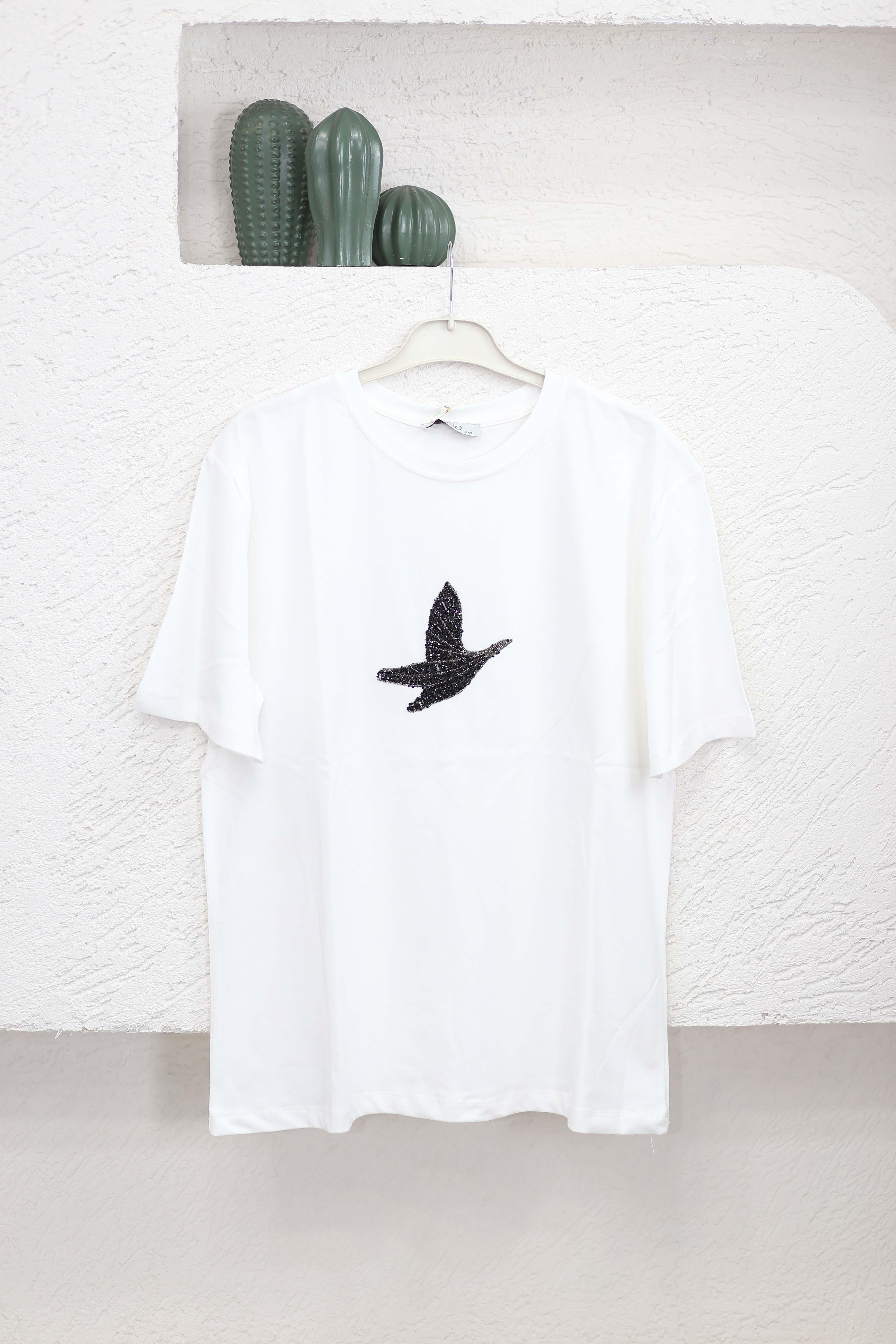 Beymen Kuşlu Tişört Siyah-Beyaz 5454
