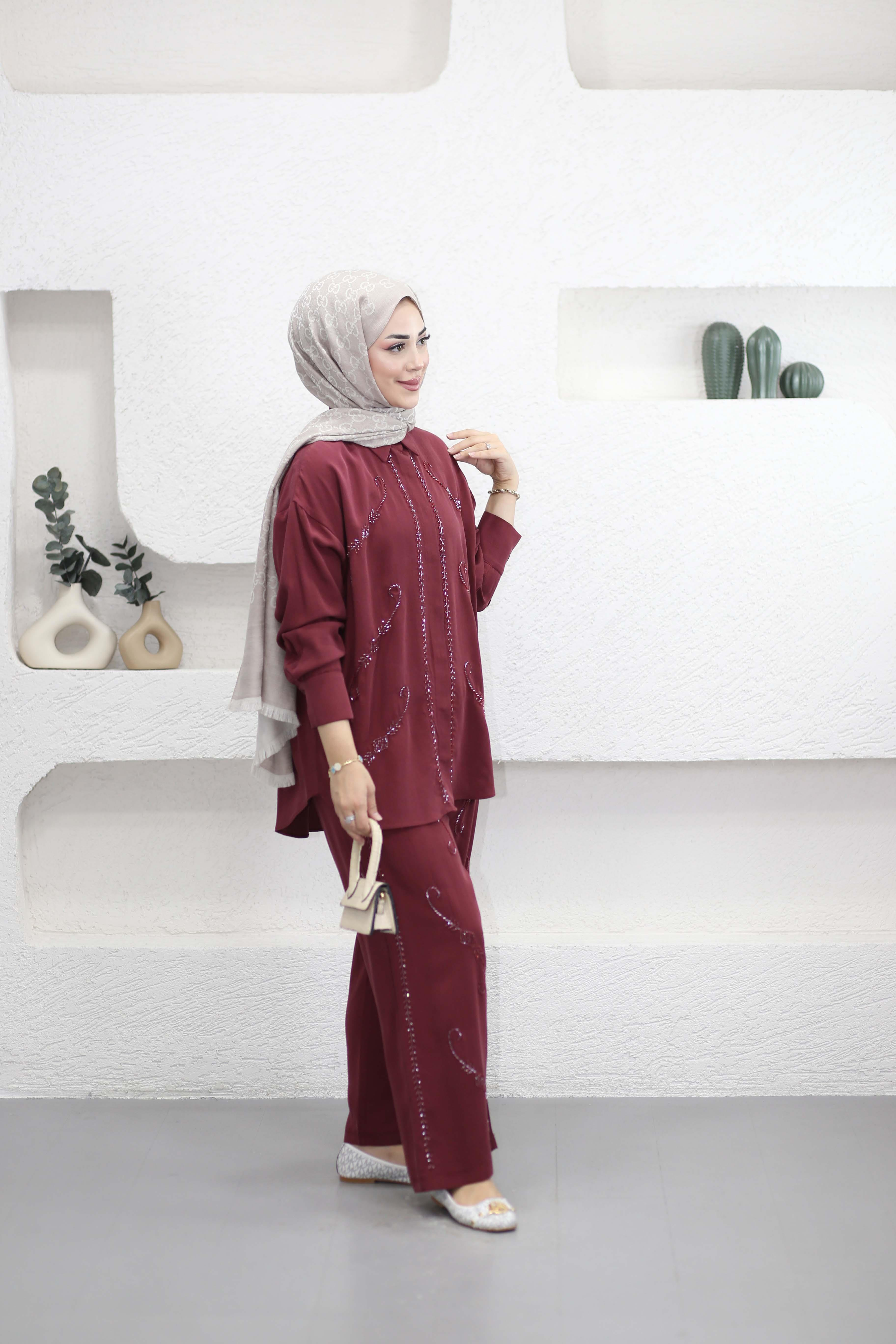 Boncuk İşlemeli Takım Bordo 72025 (25YTKMBRY.0015)