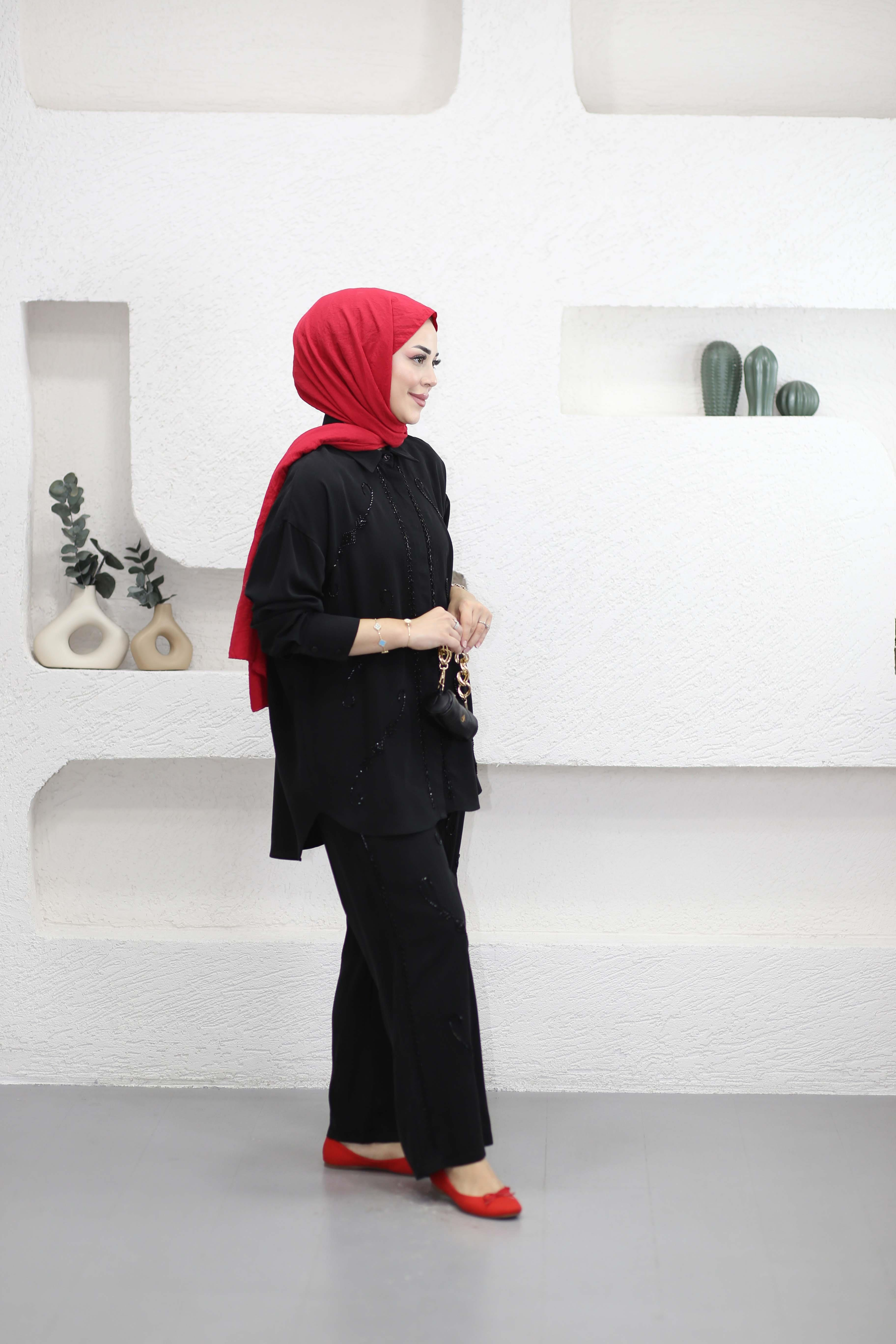 Boncuk İşlemeli Takım Siyah 72025 (25YTKMBRY.0015)