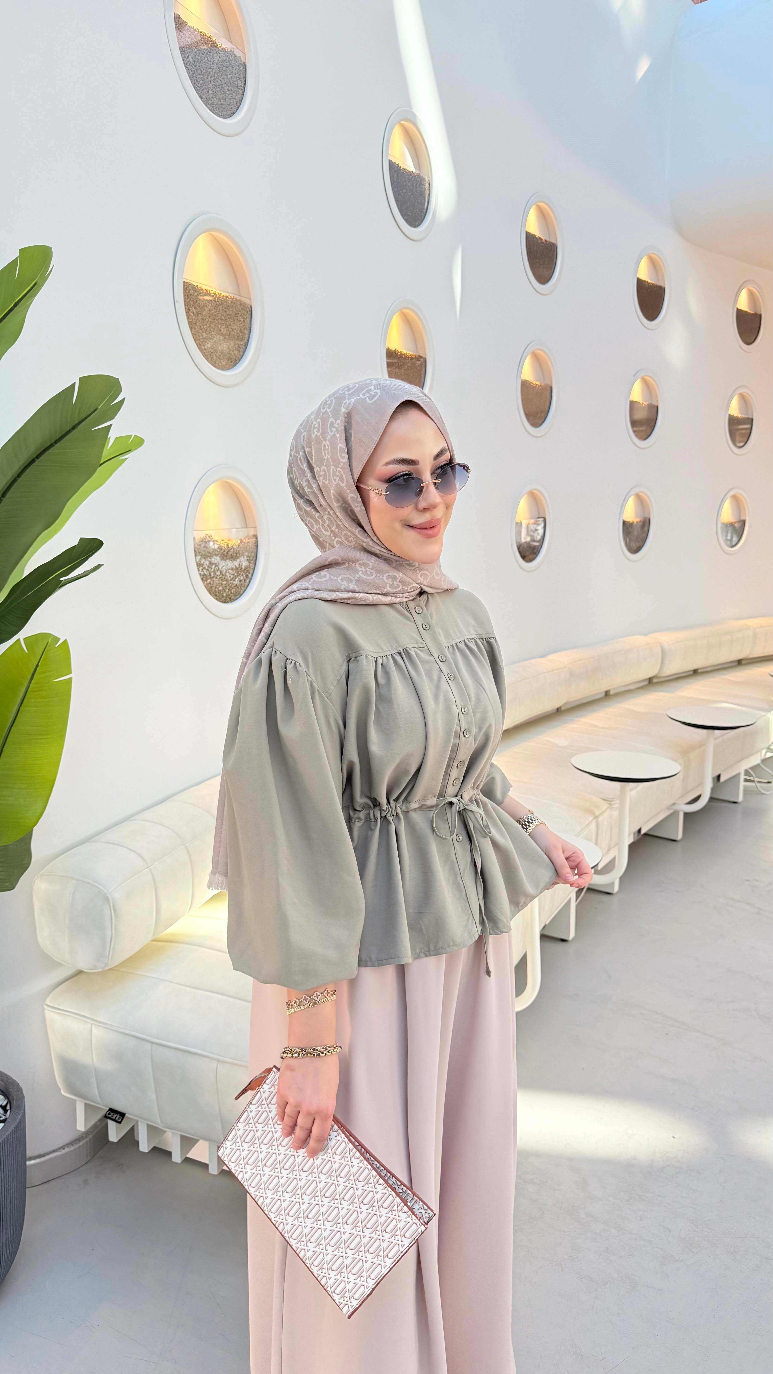 Büzgü Detaylı Gömlek Haki 3343 (26YUGYEKTX.012)