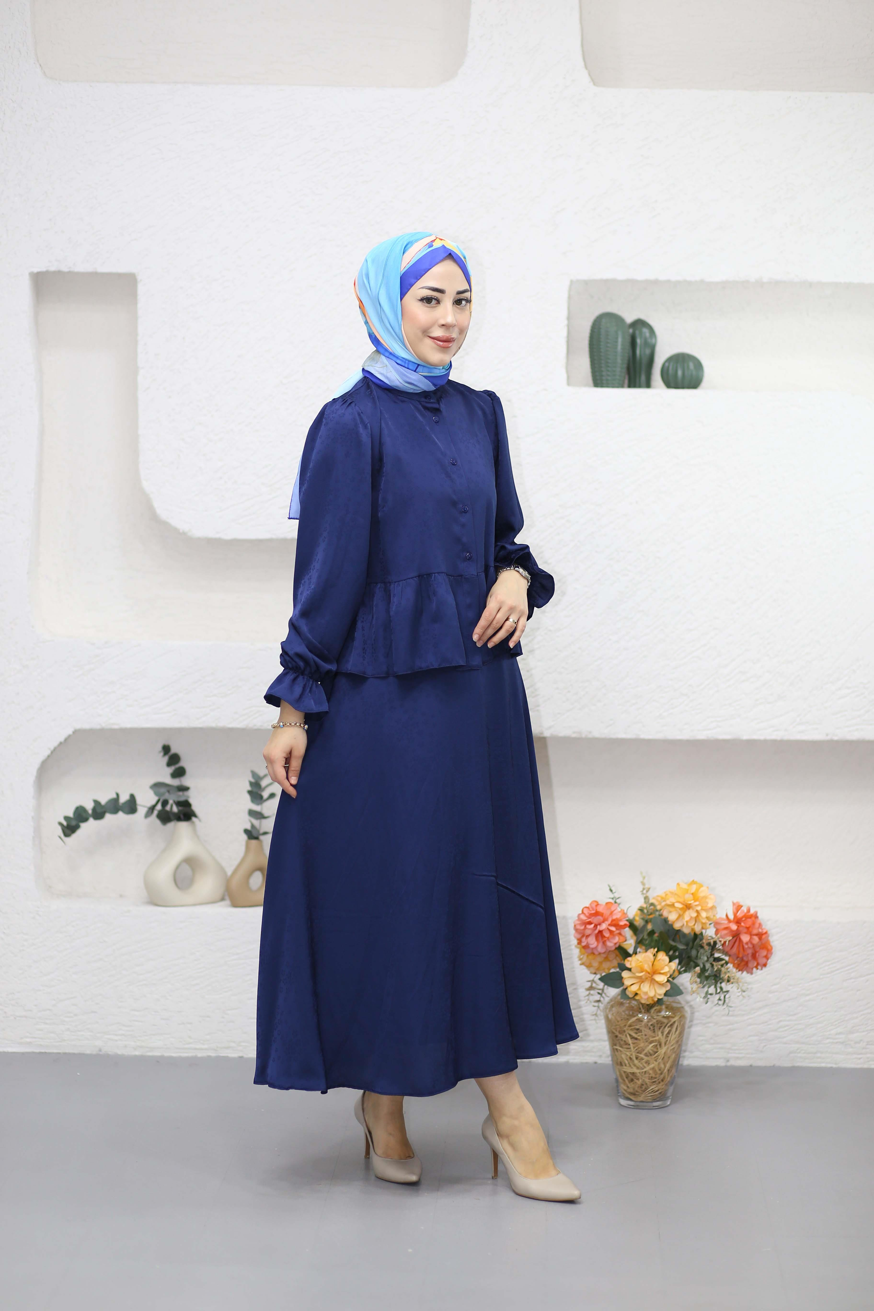 Çiçekli Saten Takım Lacivert 2949 (25KTKMLIN.0009)