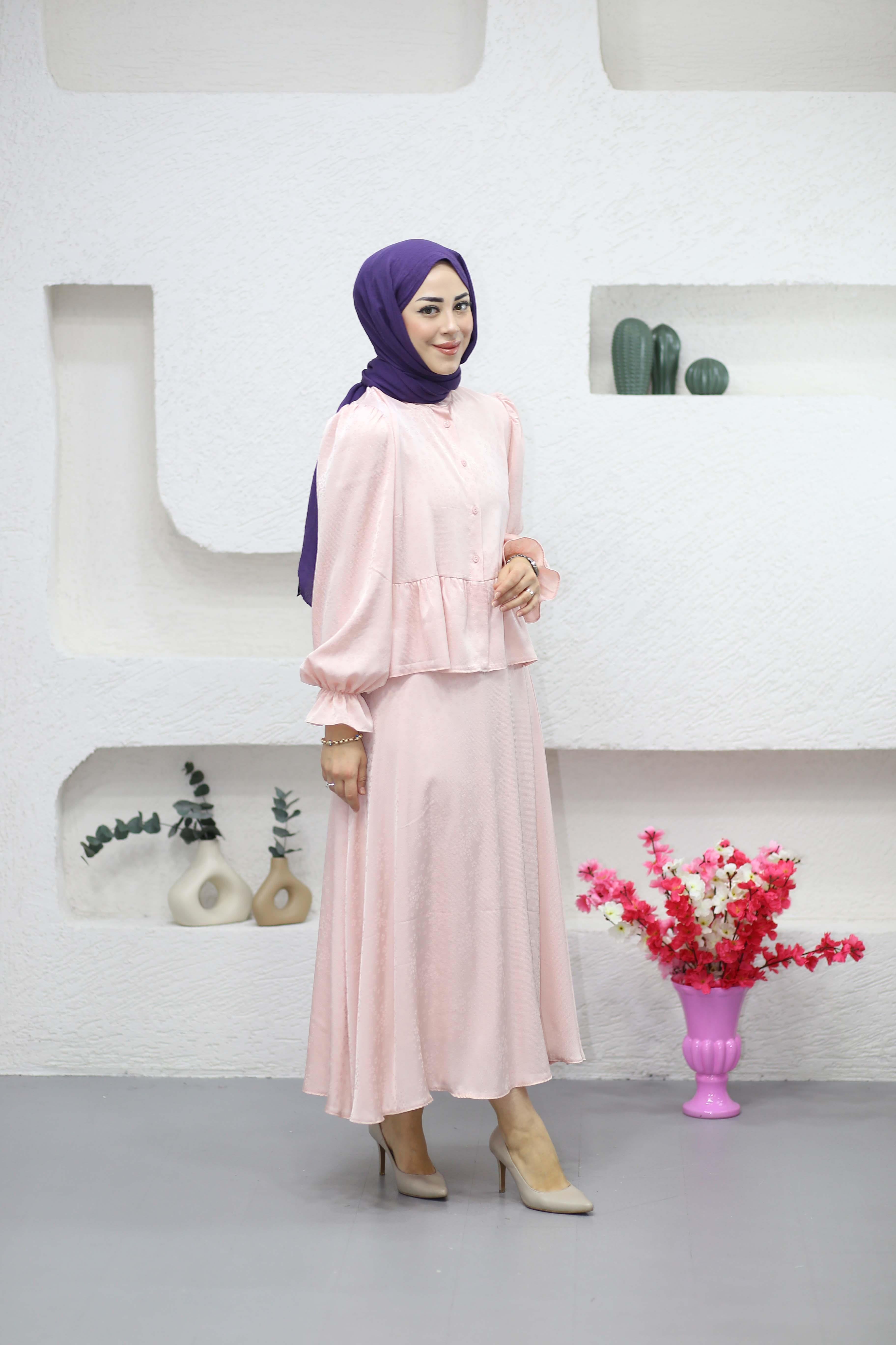Çiçekli Saten Takım Pudra 2949 (25KTKMLIN.0009)