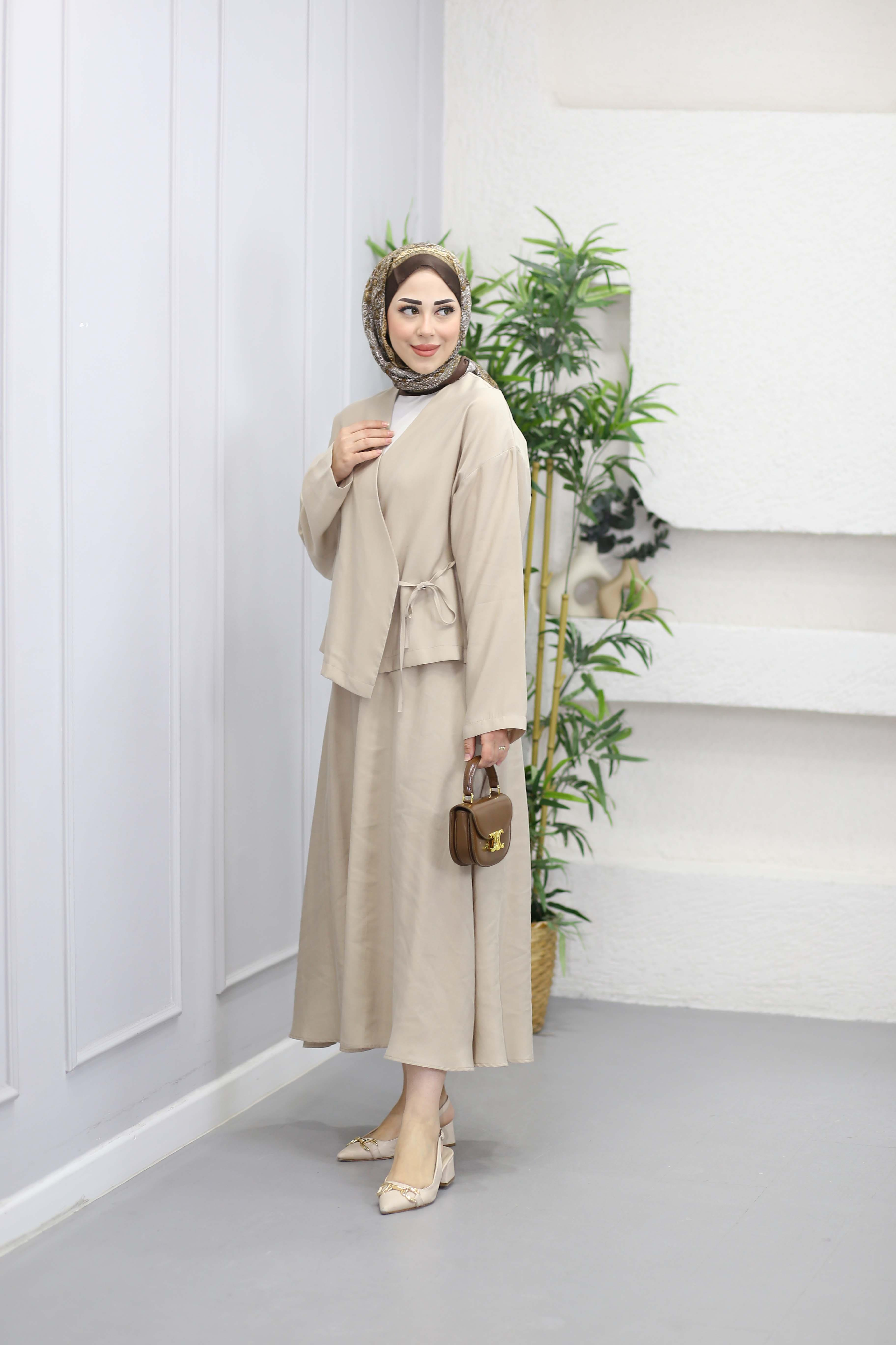 Çift Bağlamalı Etek Takım Bej 8329 (25KTKMHAZ.0001)
