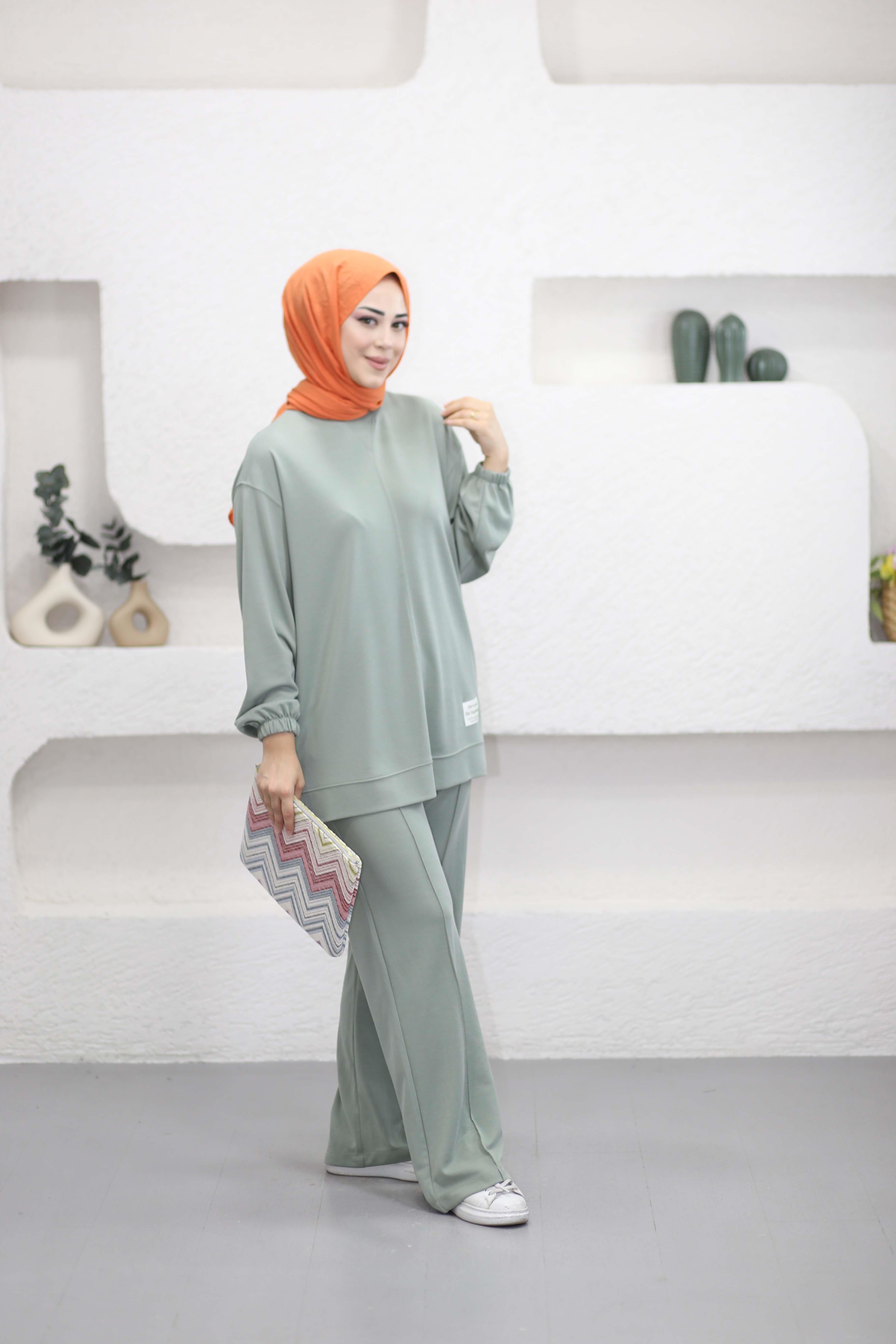 Etiket Ve Dikiş Detaylı Takım Çağla Yeşili 34764