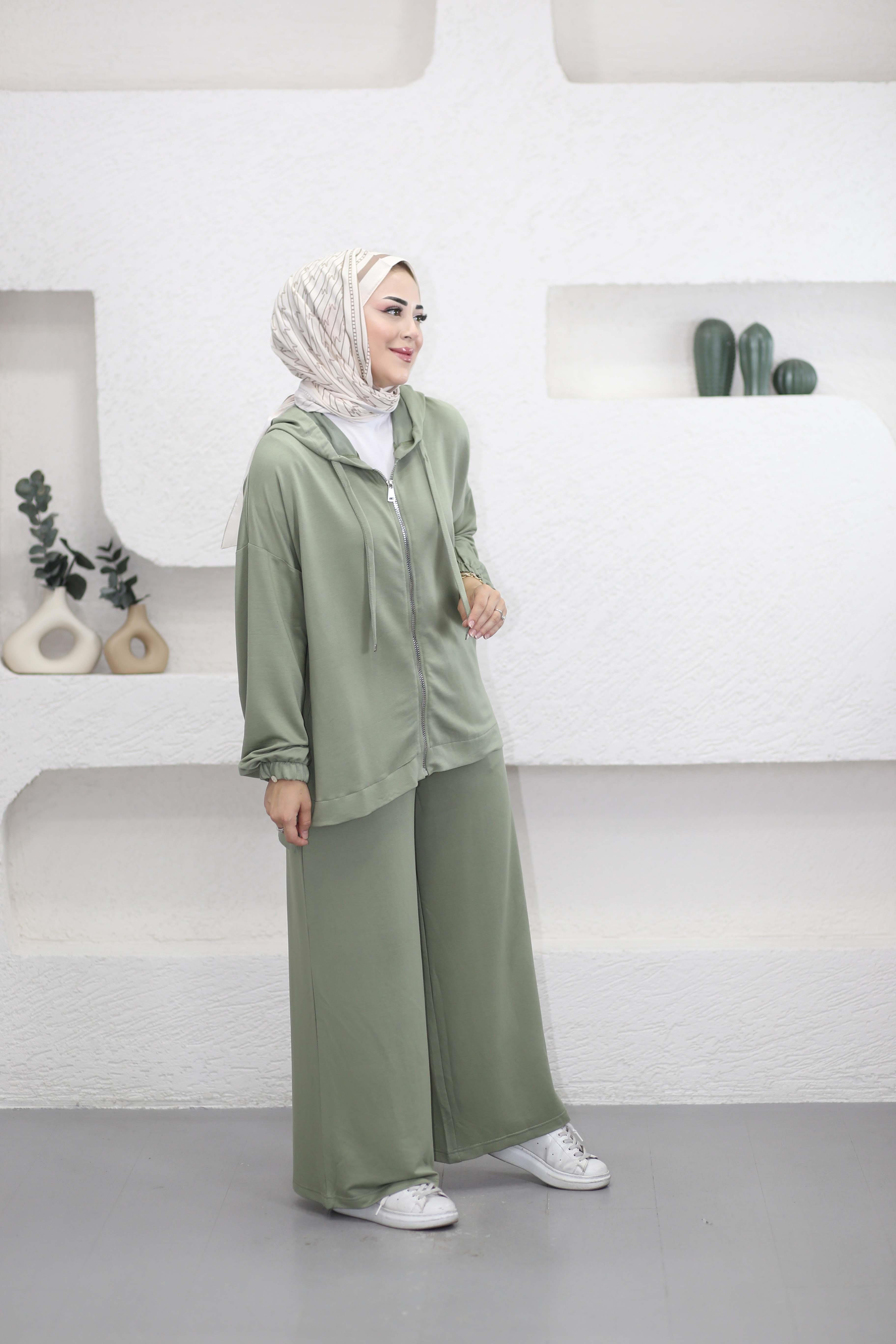 Fermuarlı Bol Paça Takım Çağla Yeşili 5804