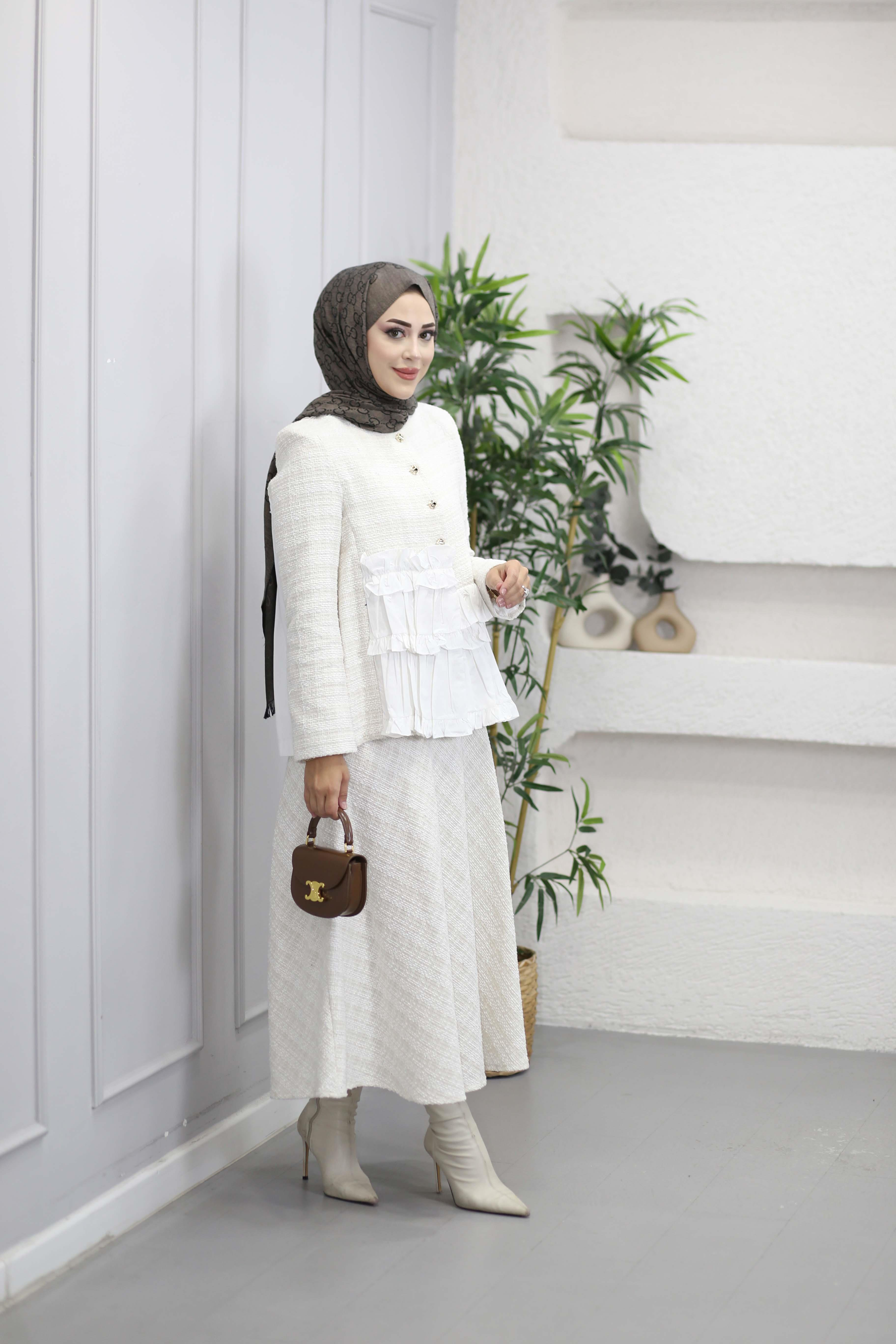 Fırfır Detaylı Tüvit Etek Takım Bej 3142