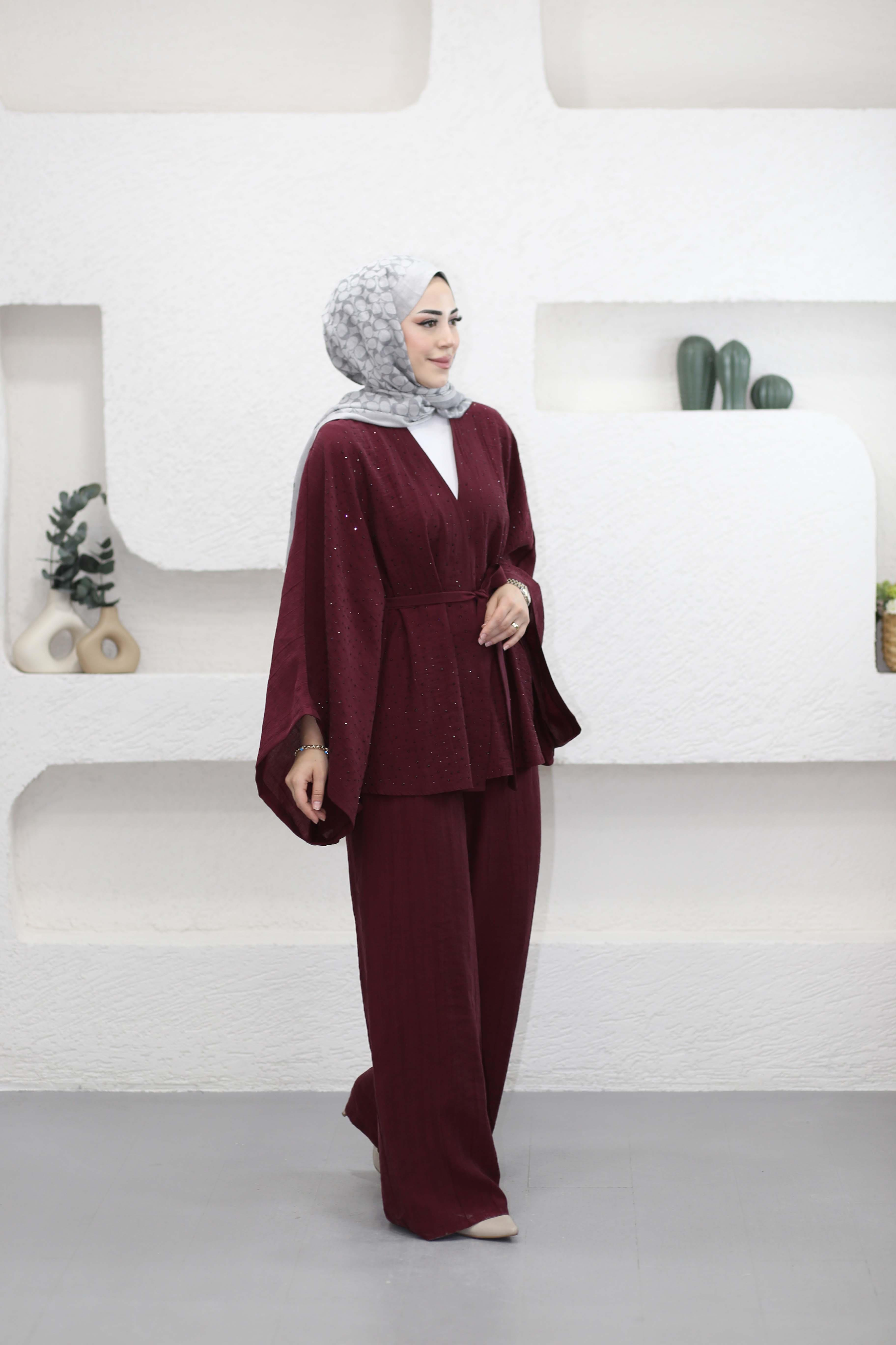 Işıltı Kimono Takım Bordo 5608 (25YTKMNAG.0012)