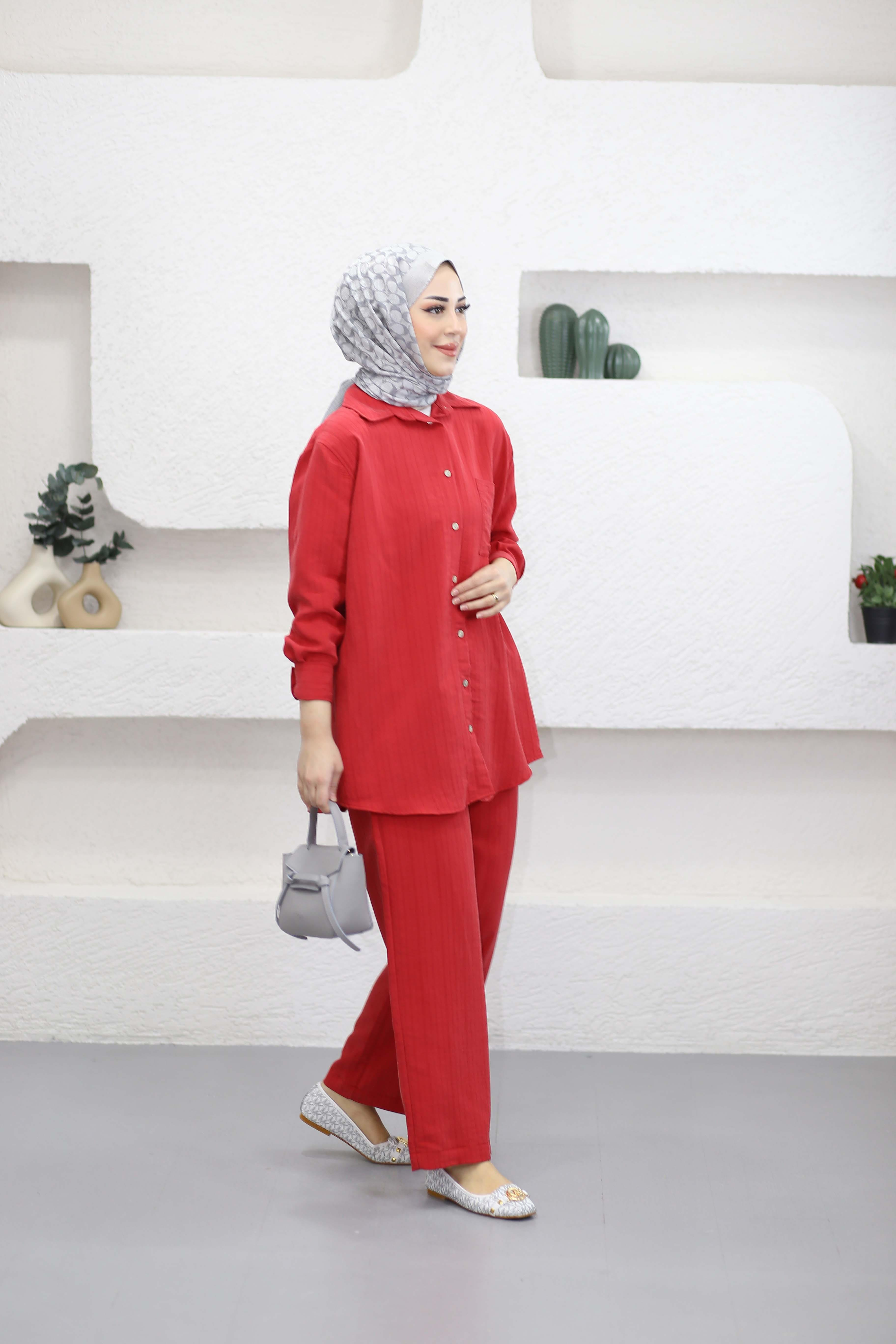 Kendinden Desenli Gömlek Takım Kırmızı 22694 (25YTKMPLS.0005)