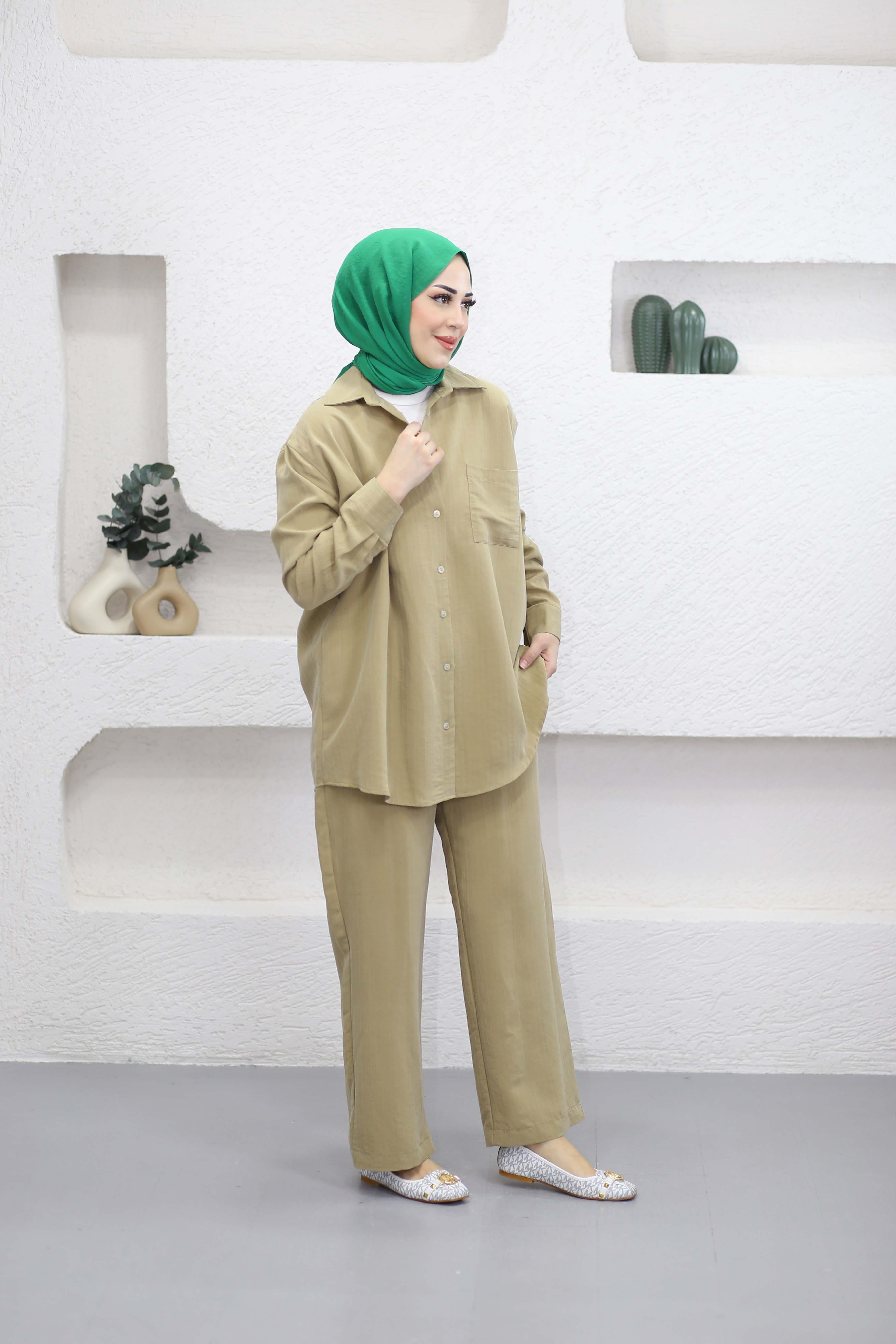 Kendinden Desenli Gömlek Takım Küf Yeşili 22694