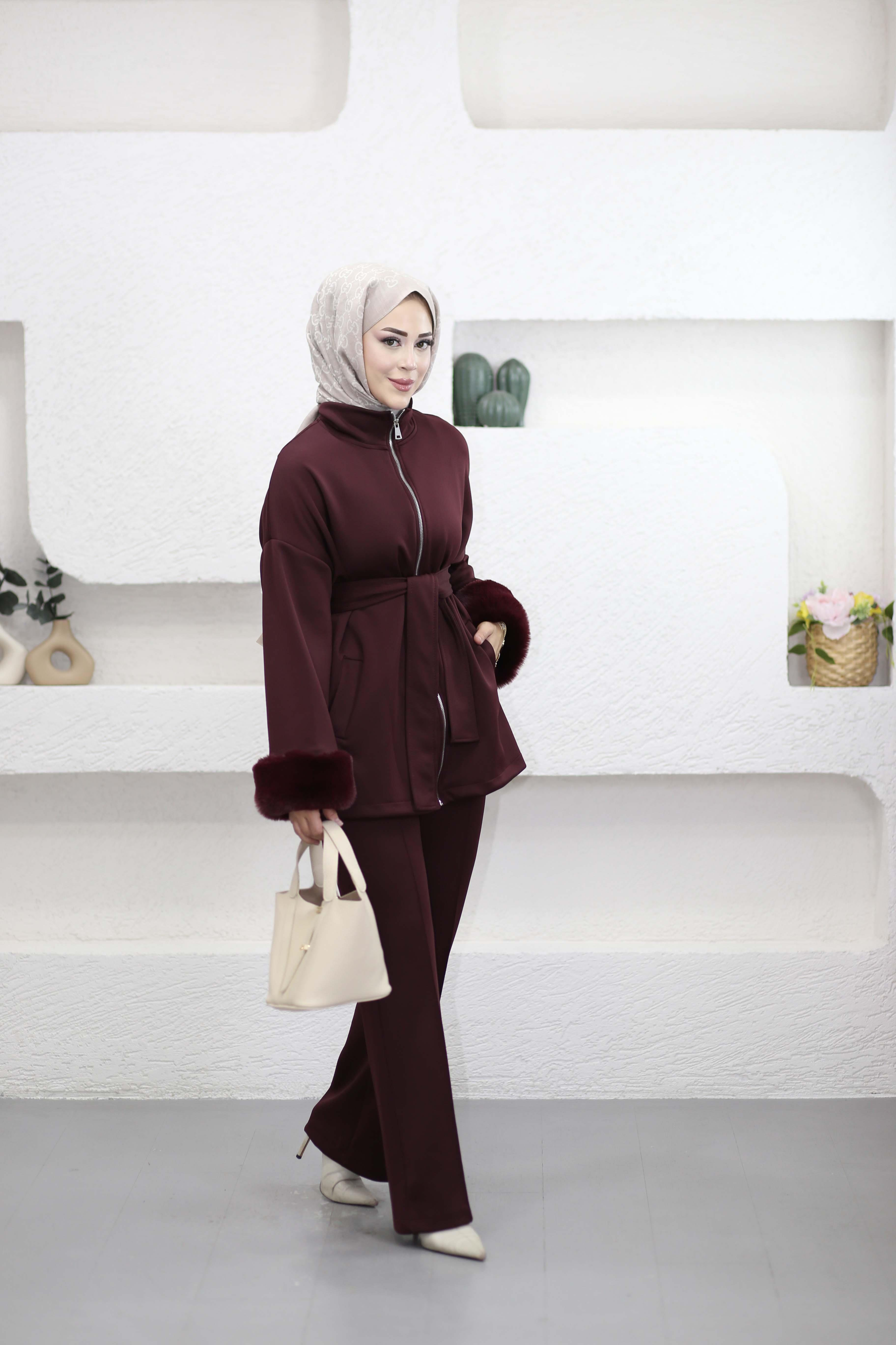 Kürk Detaylı Takım Bordo 2035