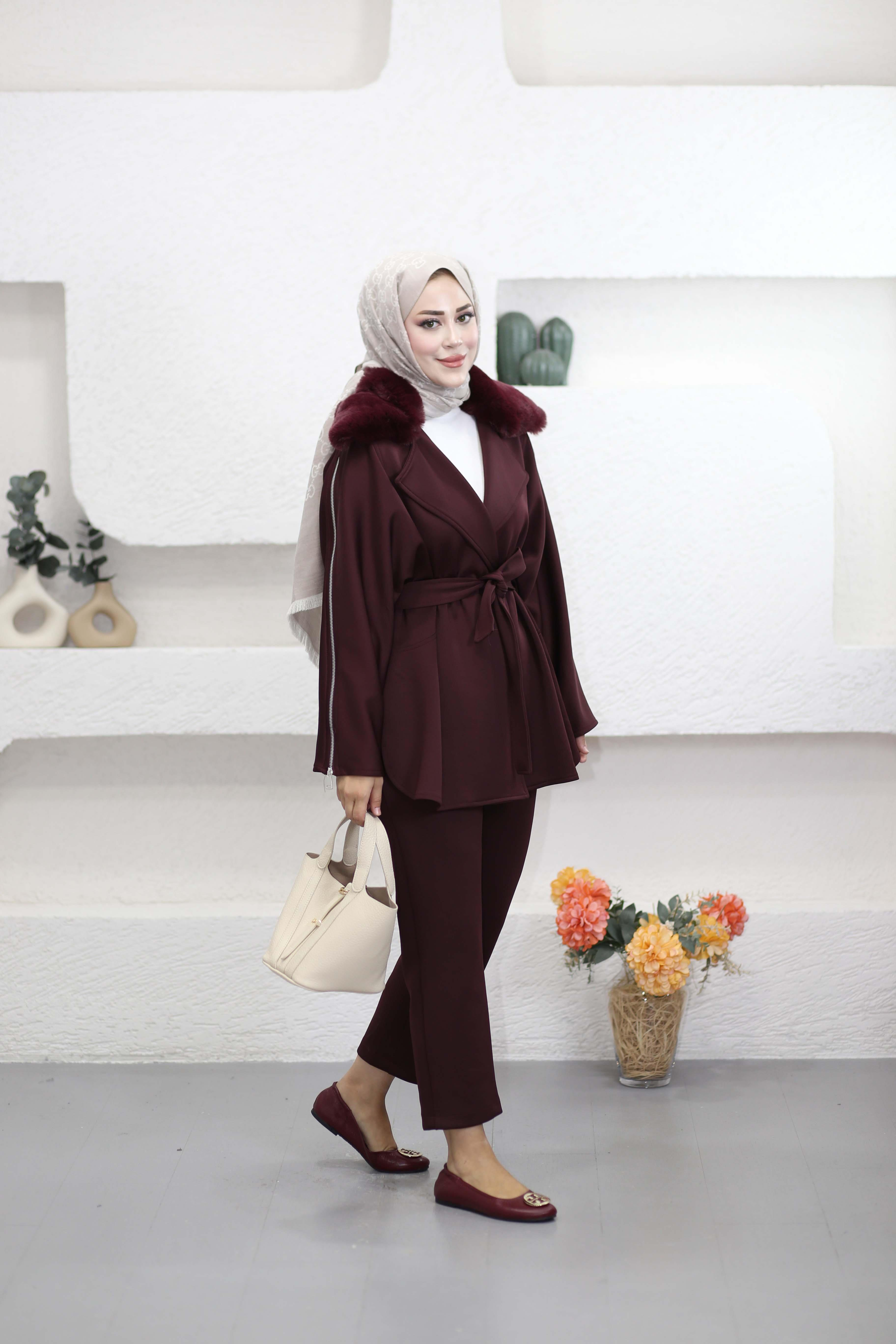 Kürk Yakalı Scuba Takım Bordo 2033 (26KTKMSVR.0005)