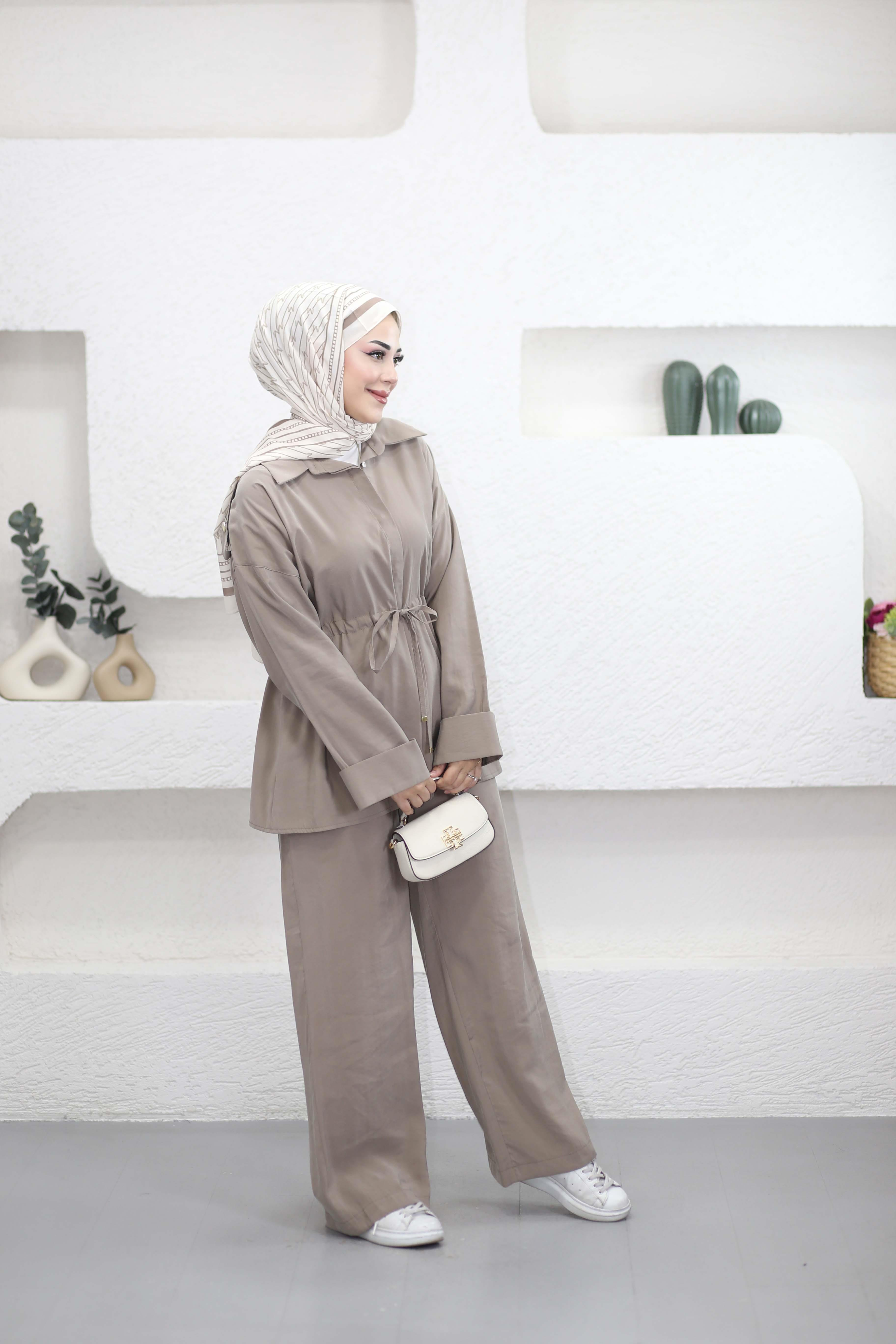 Omzu Düğmeli Modal Takım Vizon 101163 (25YTKMSVR.0006)