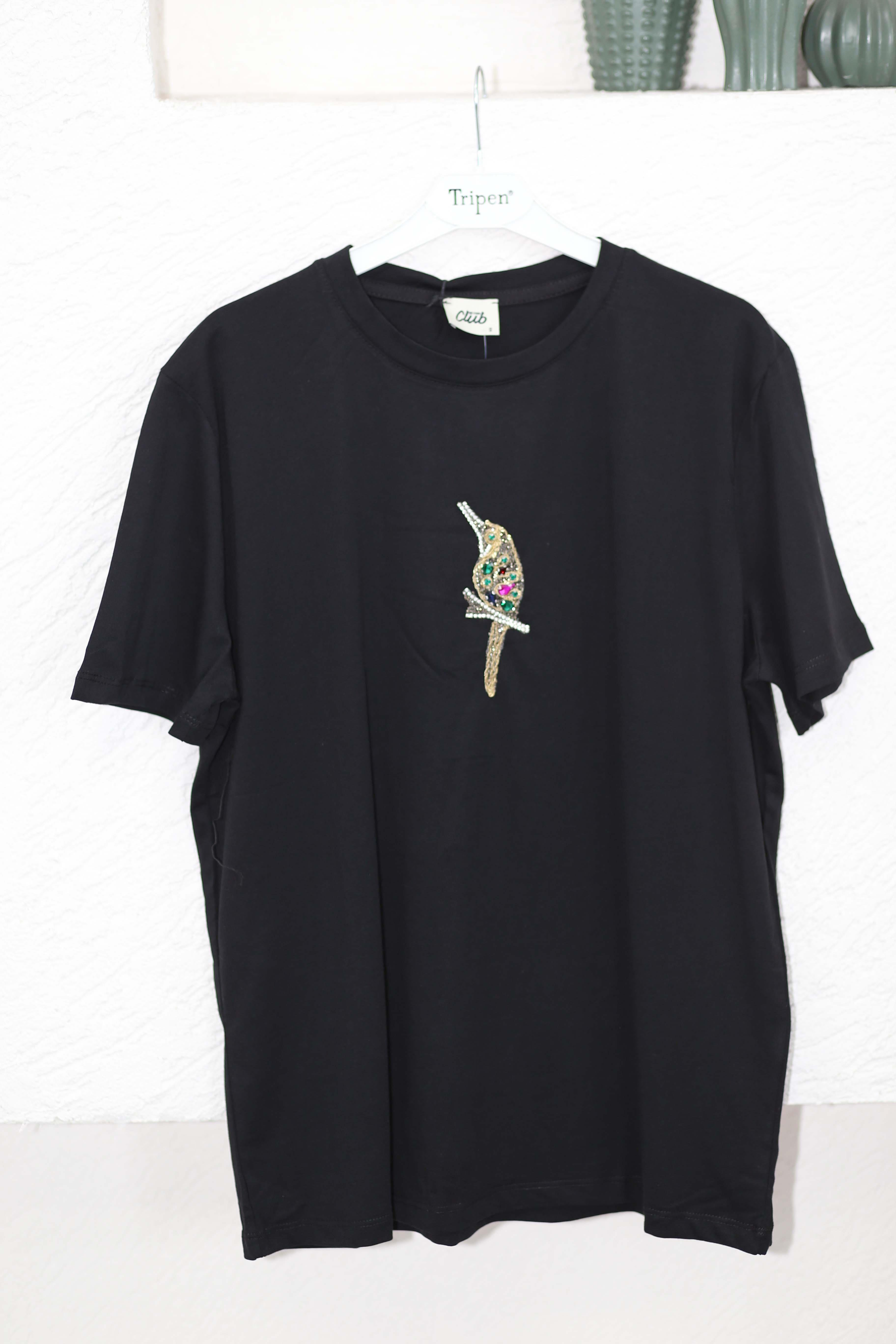 Papağan Taşlı Tişört Siyah 9008