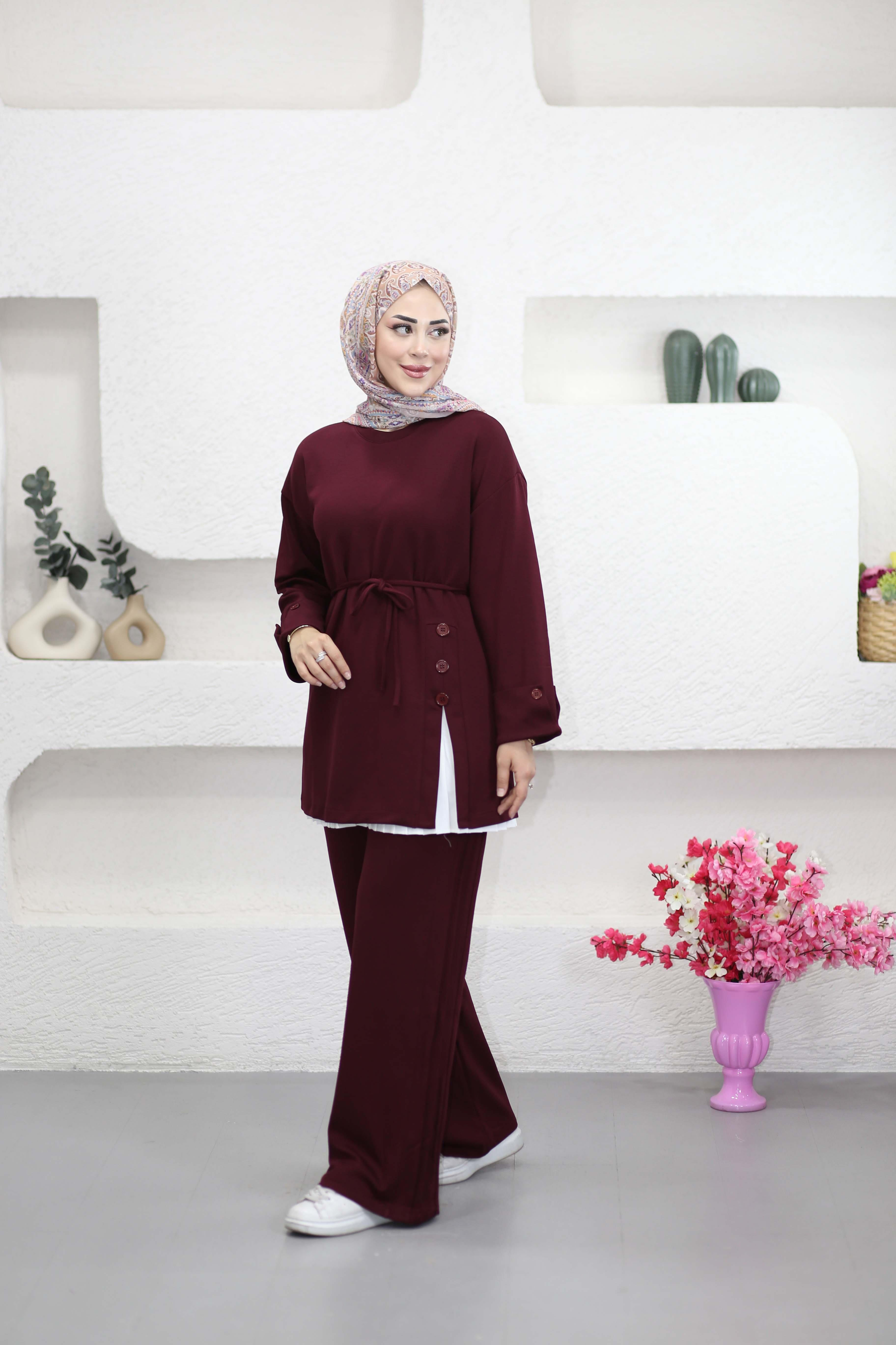 Premium Düğmeli Oysho Takım Bordo 2968 (25YTKMPLEN.008)