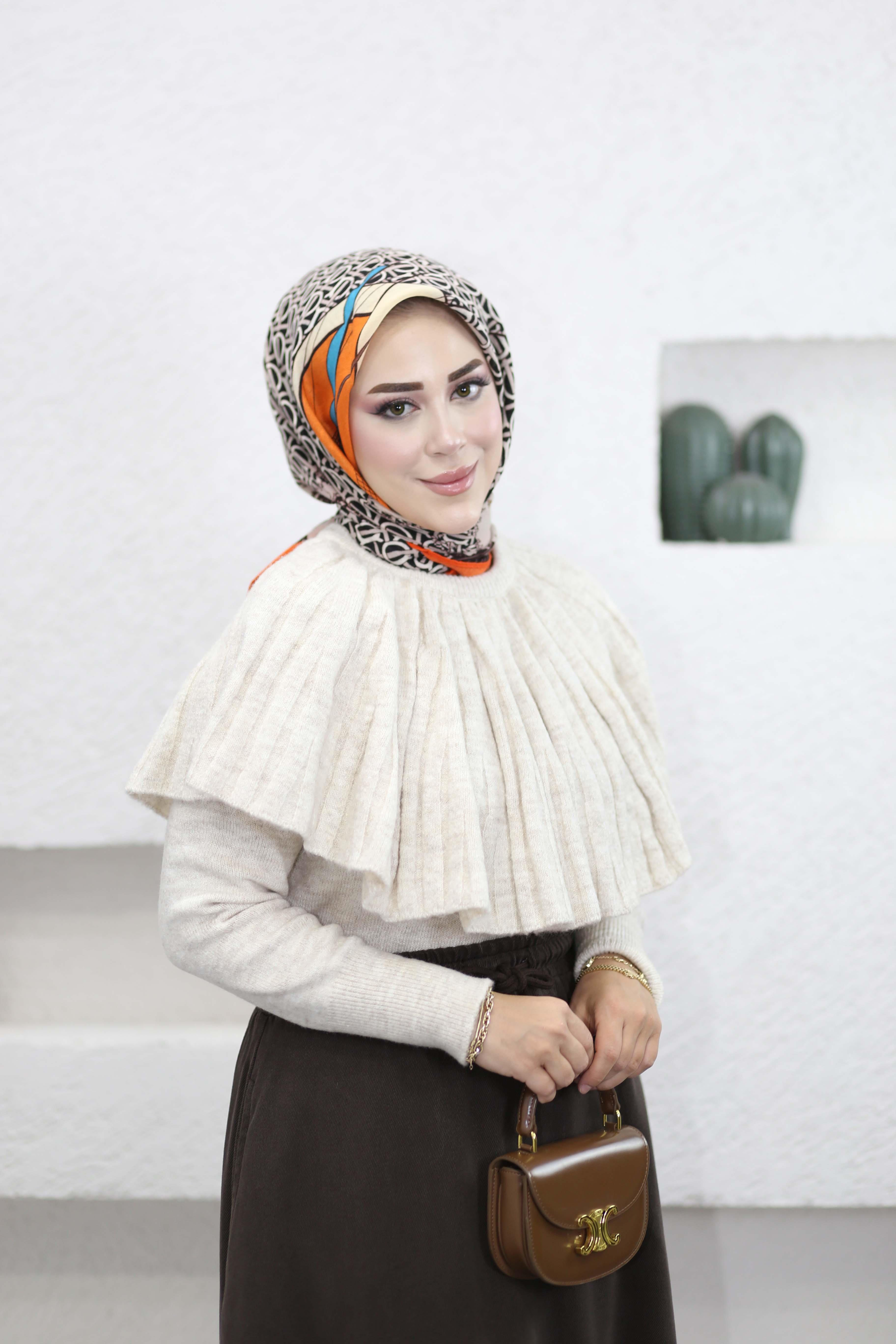 Simli Peplum Triko Kazak Bej 700 (26KUGYAHL.0002)