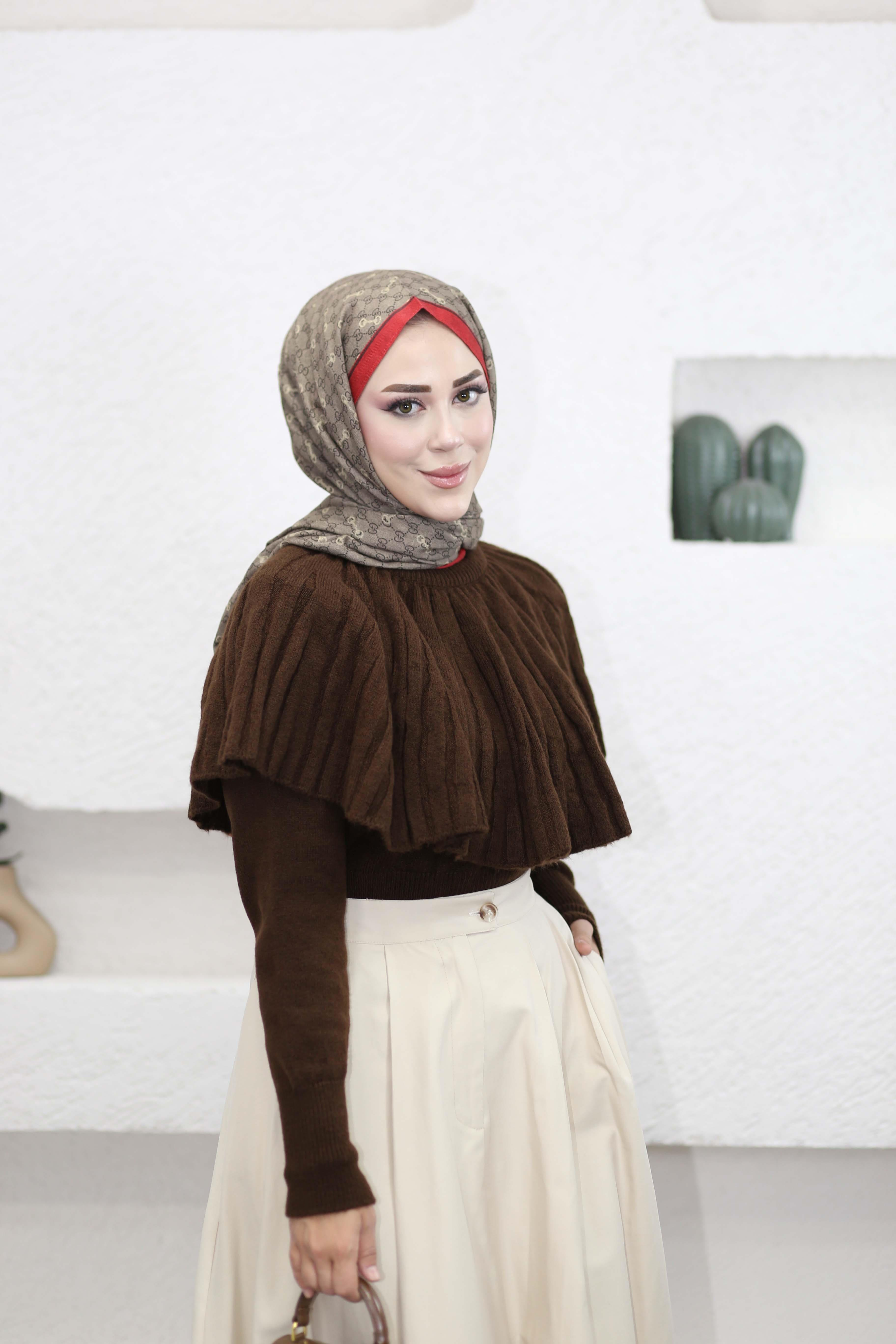 Simli Peplum Triko Kazak Kahverengi 700 (26KUGYAHL.0002)