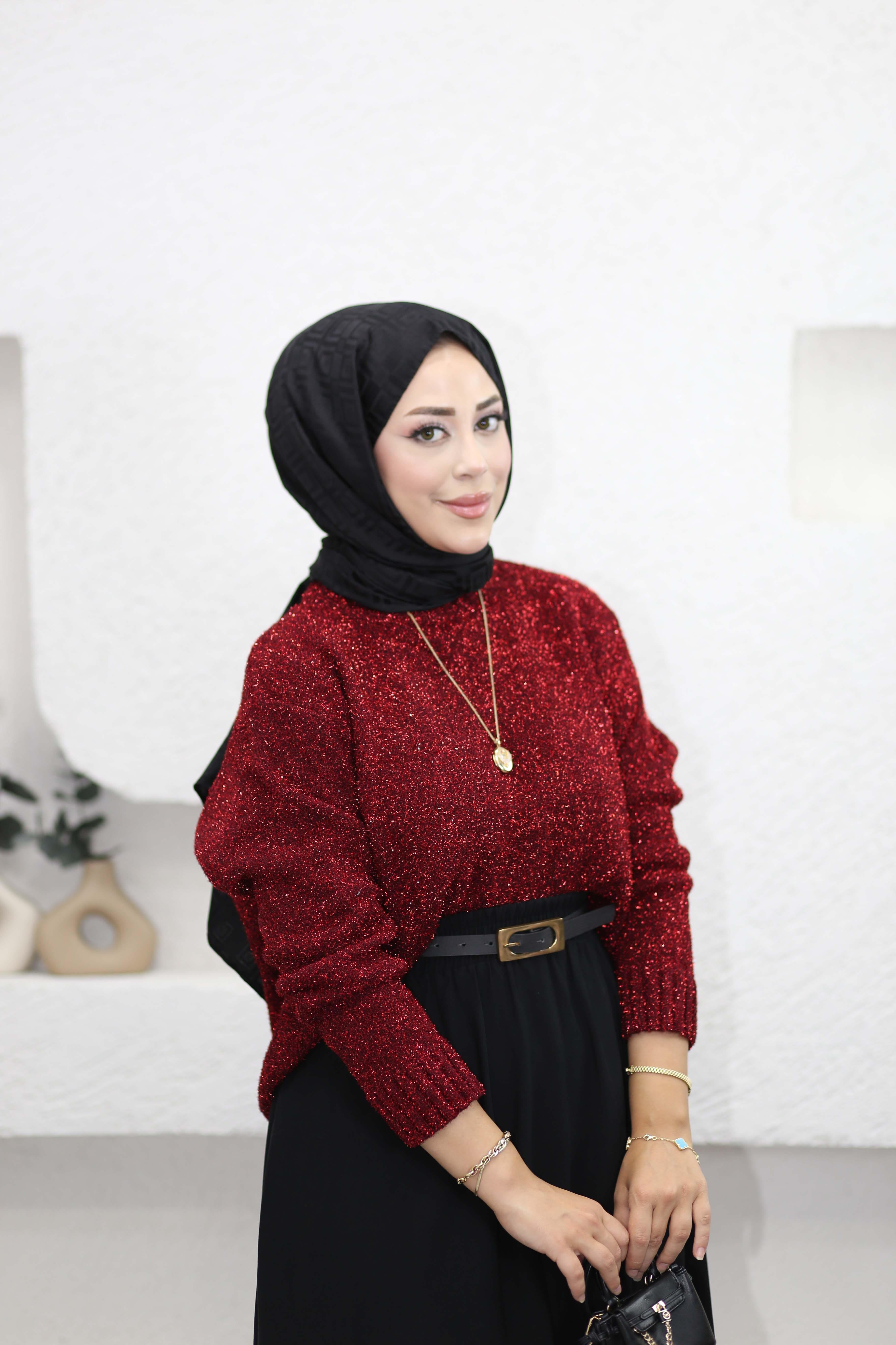 Simli Sakallı Kısa Kazak Kırmızı 51140