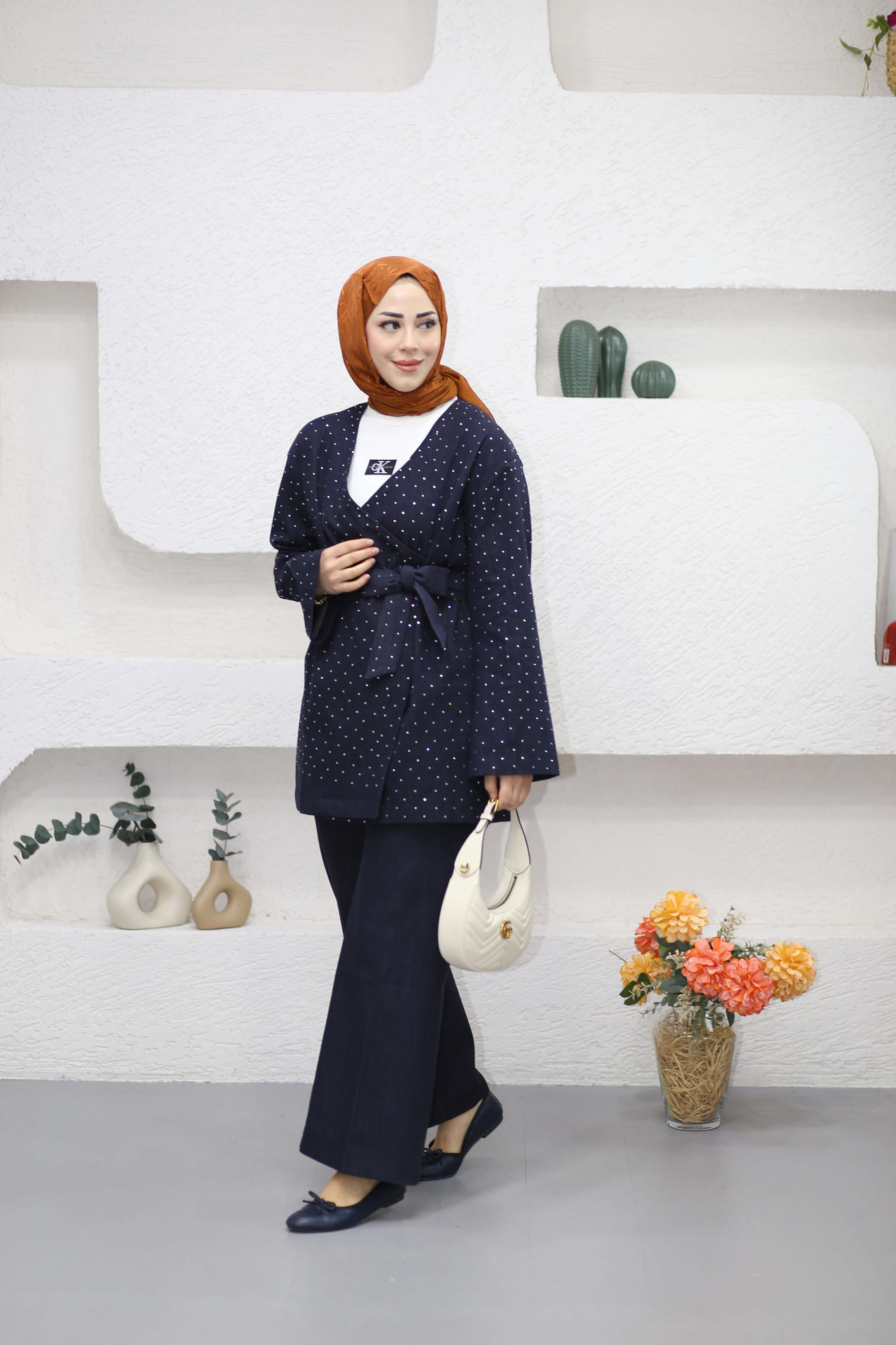 Taş işlemeli Denim Takım Lacivert 25029 (25KTKMHPS.0002)