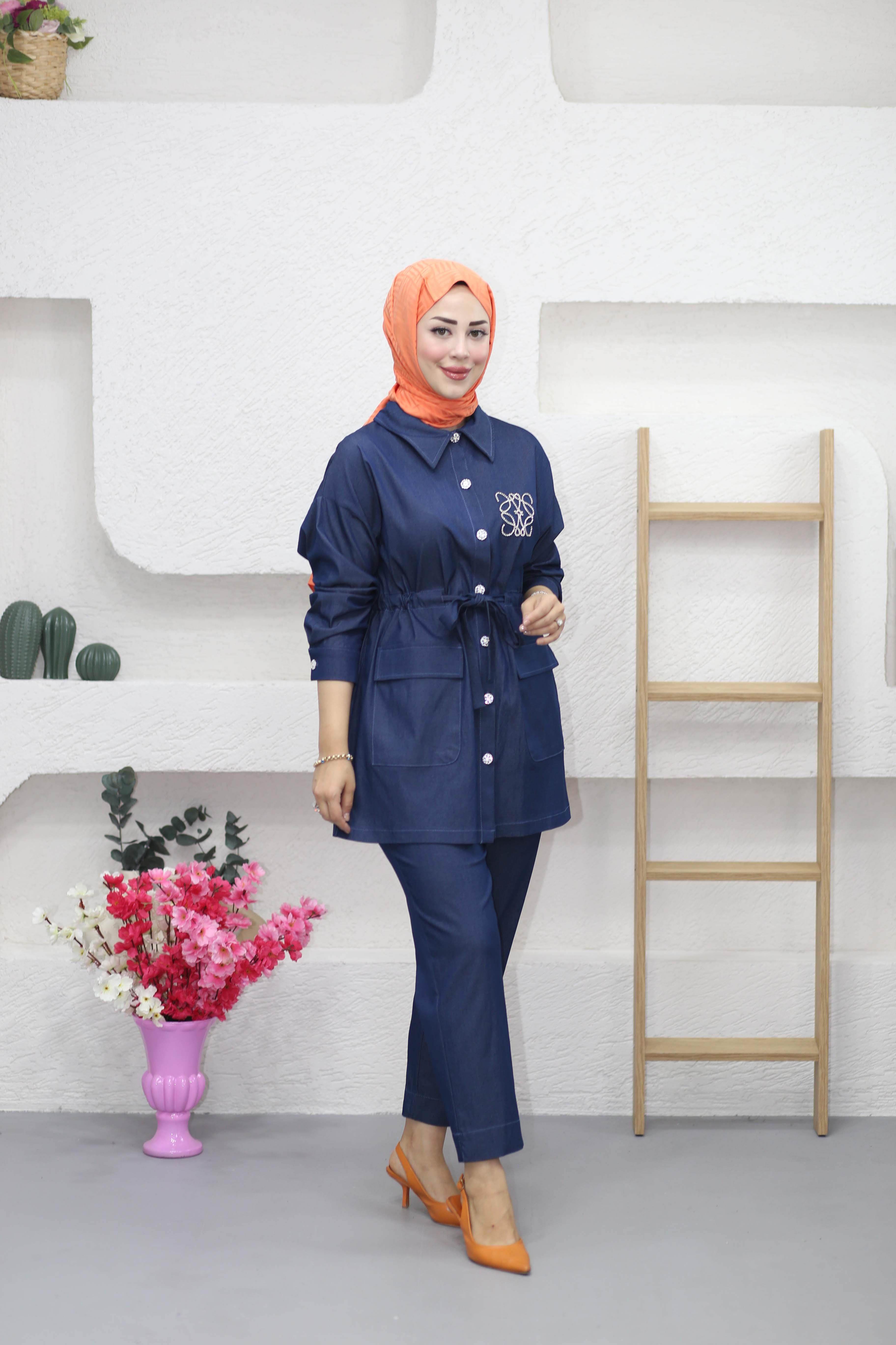 Taşlı Tencel Takım Kot Mavisi 9665 (24ASTKMNQT.005)