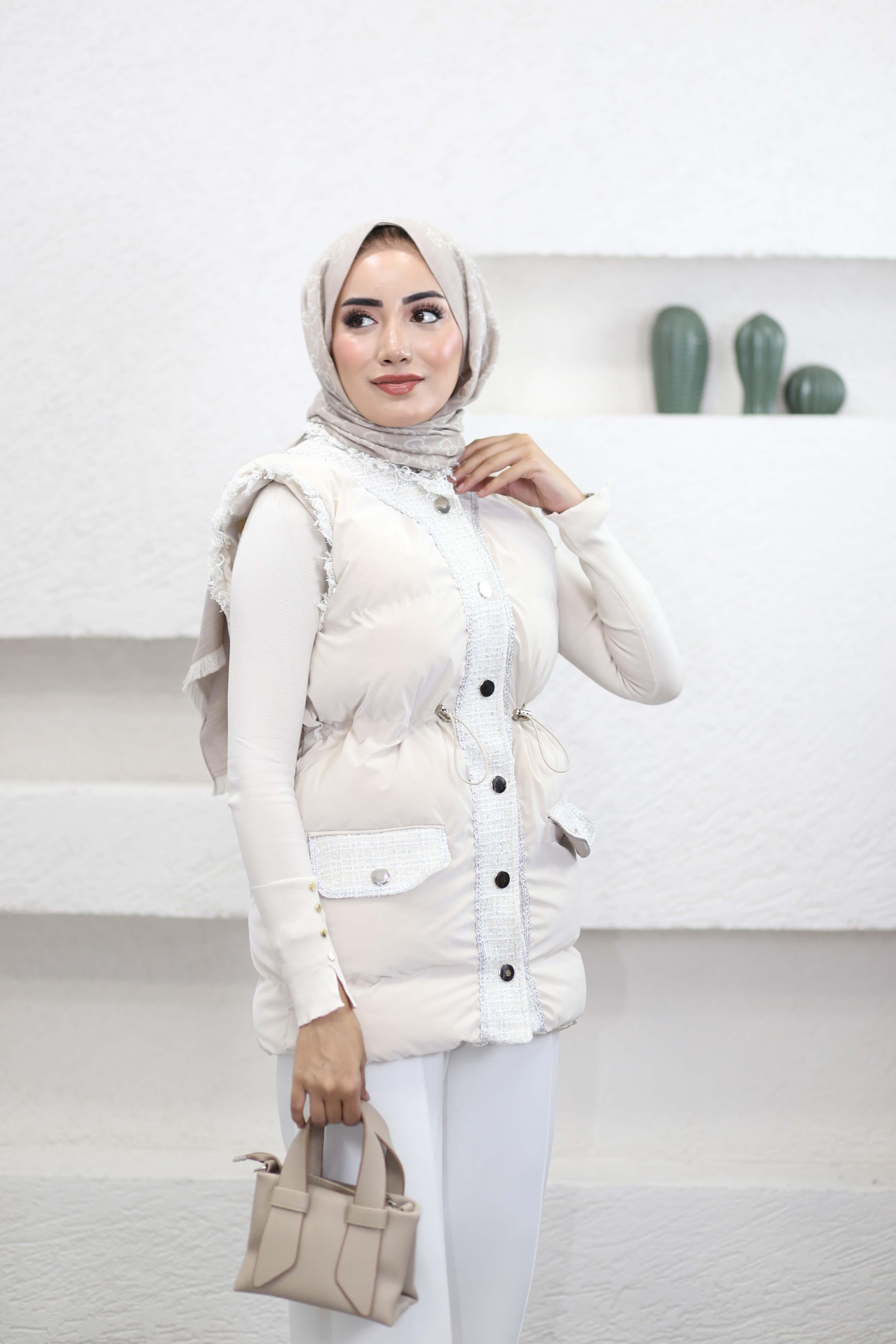 Tüvit Detaylı Şişme Yelek Bej 2001