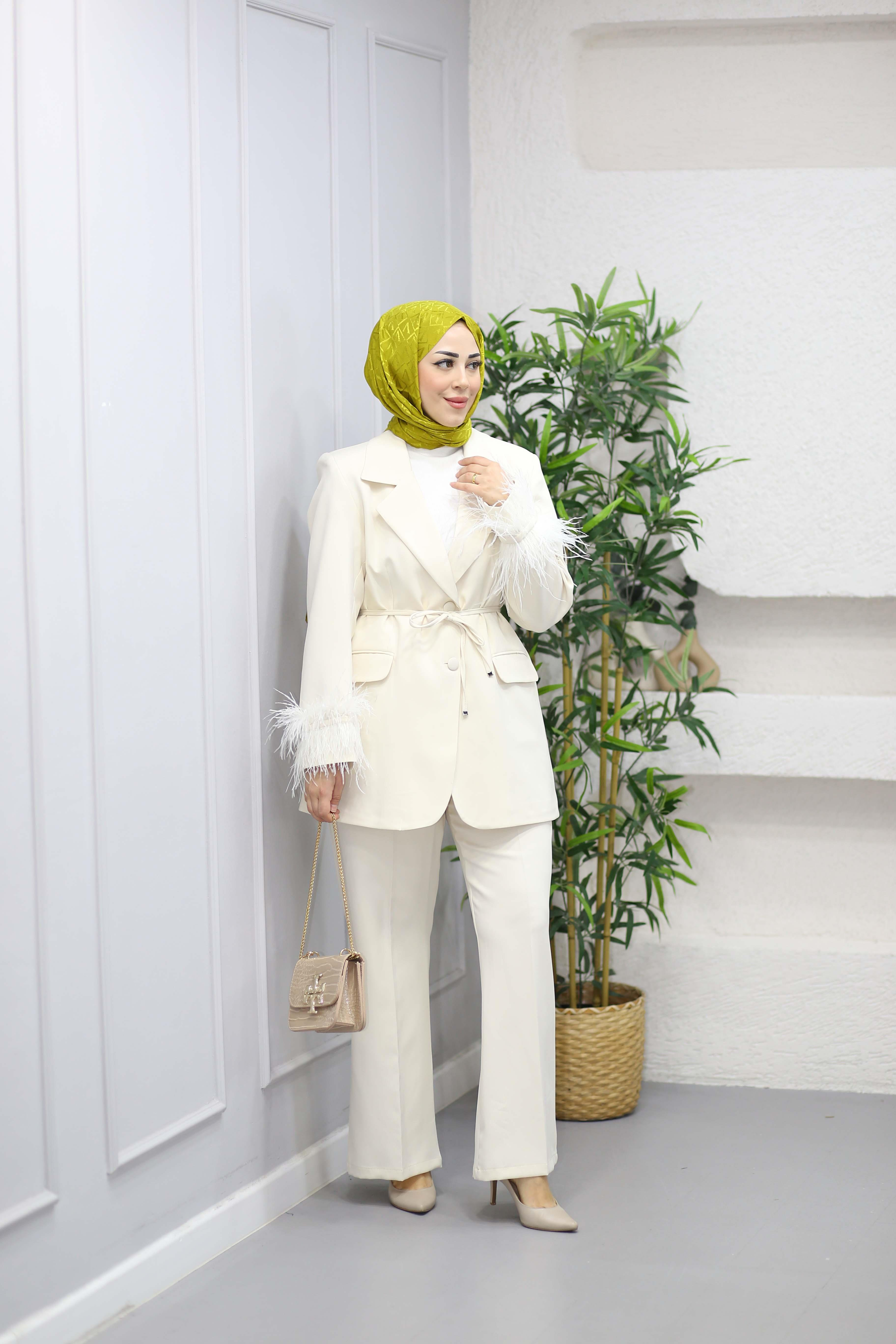 Tüylü Blazer Ceket Takım Krem 6516 (25KTKMAHL.0010)