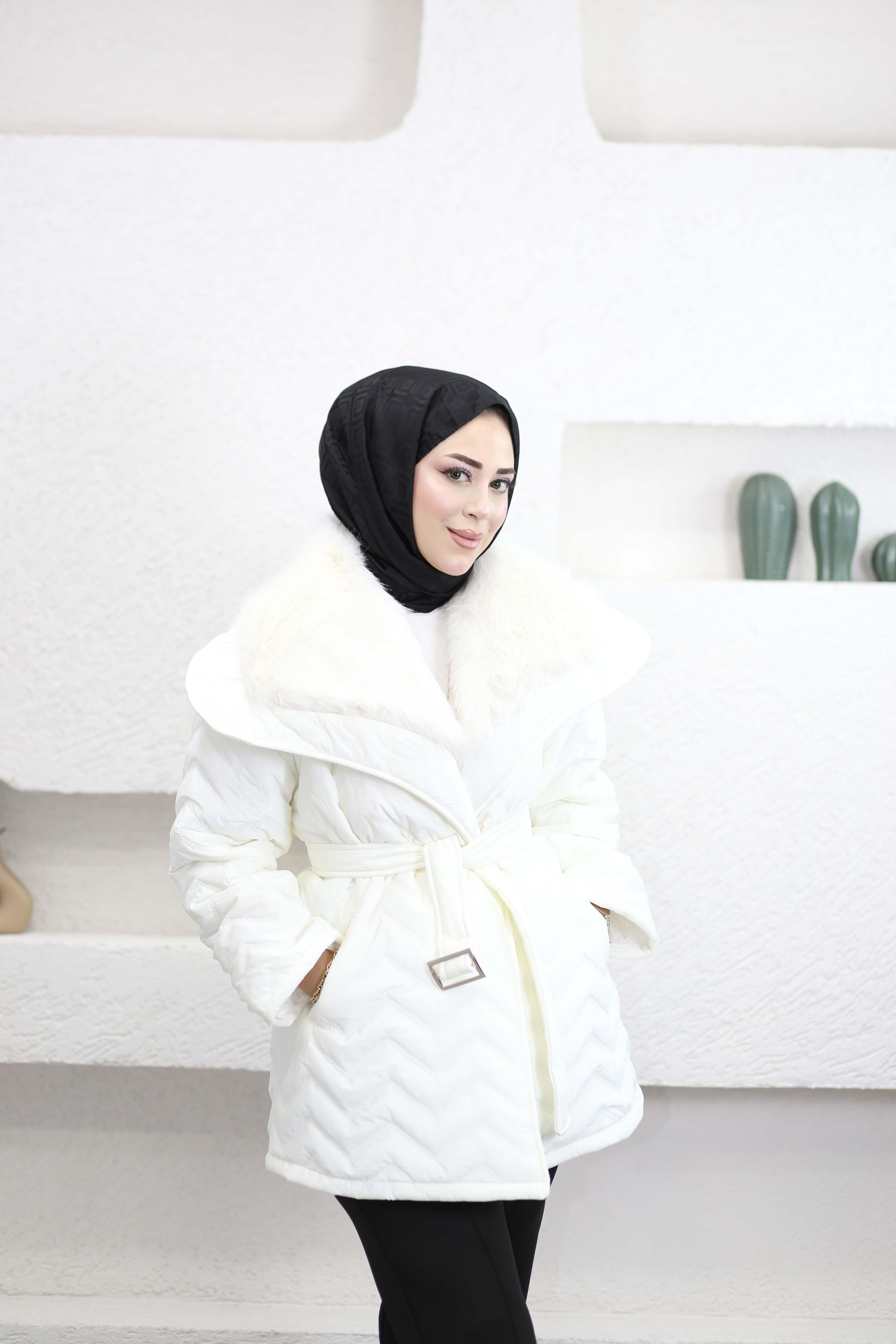 Yakası Kürklü Parlak Mont Ekru 6167 (26KDGYQQA.0001)