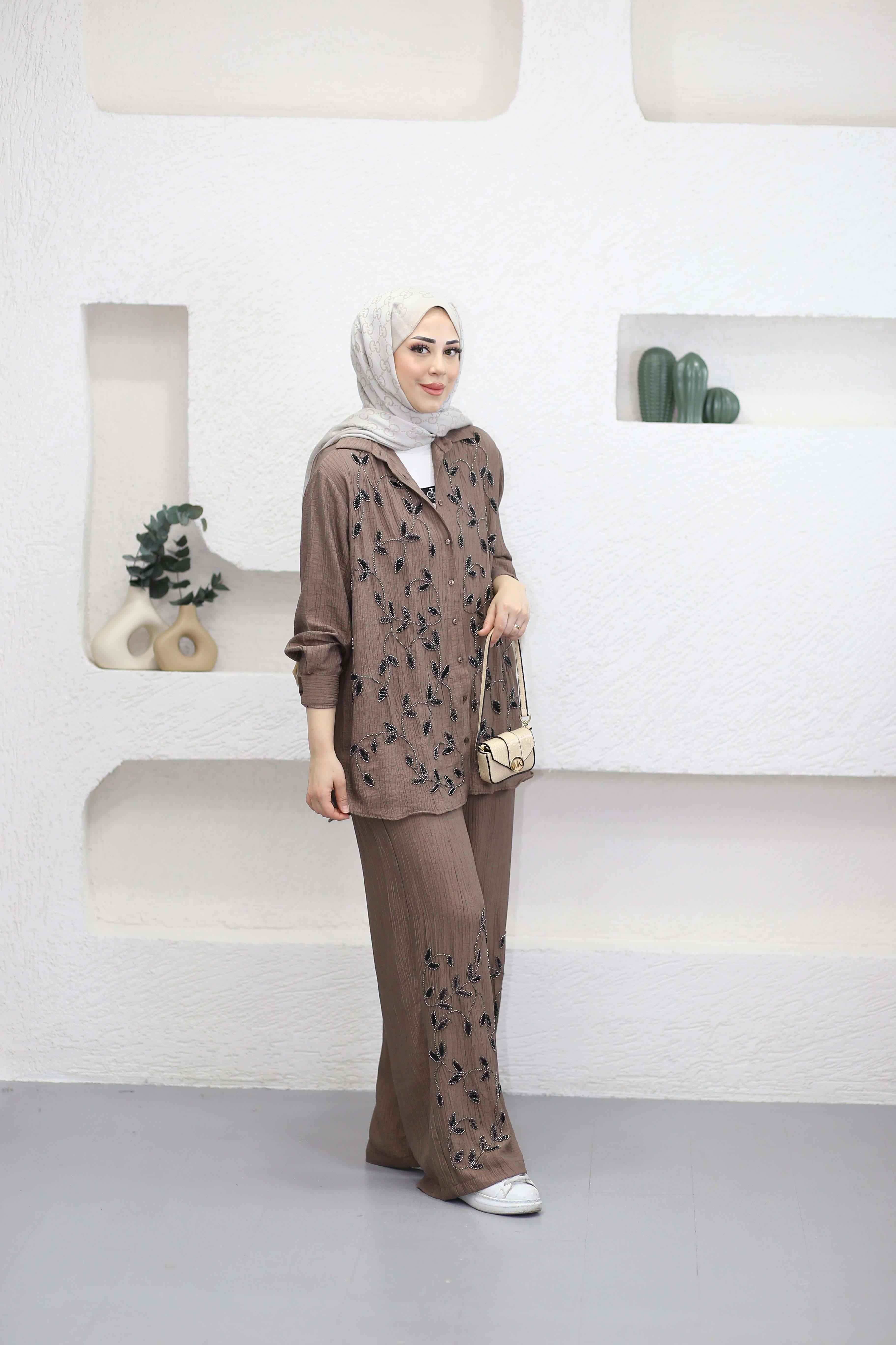 Yaprak Desenli Takım Kahverengi 34483 (25YTKMONK.0006)