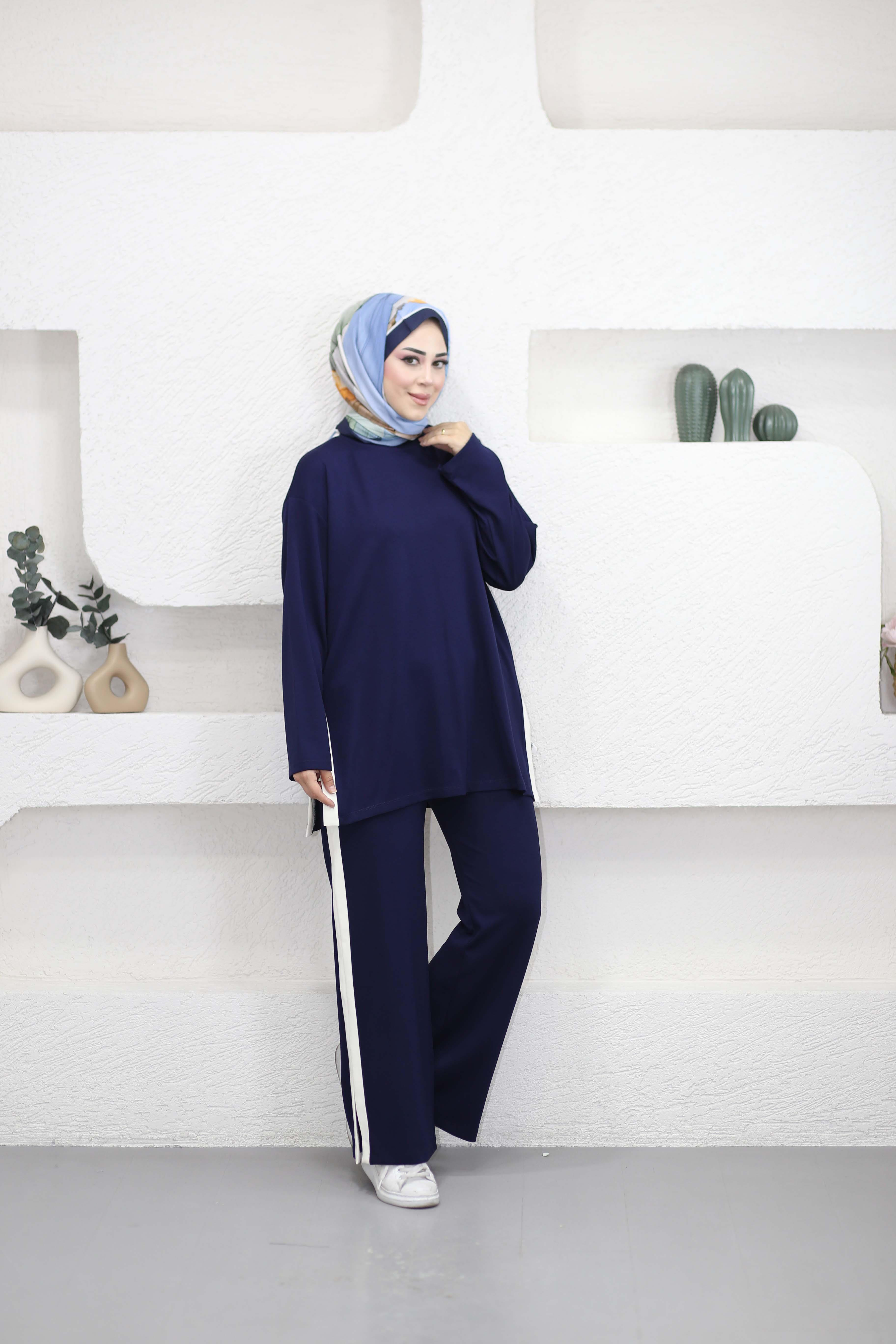 Yırtmaçlı Garni Detaylı Takım Lacivert 3049 (25YTKMEKTX.013)